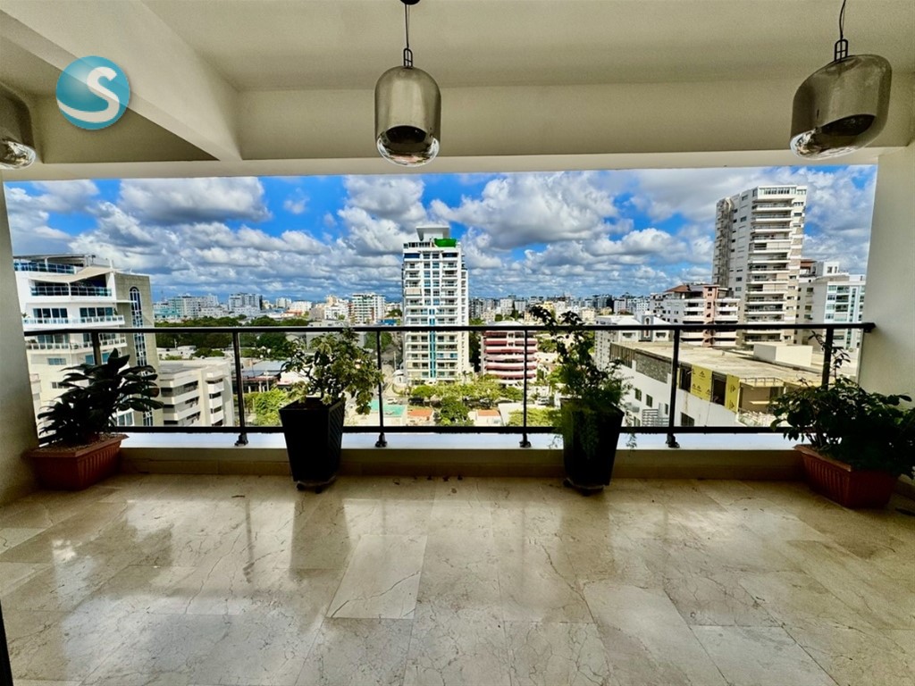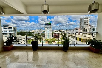 Apartamento amueblado de 3 habitaciones + estudio, en Los Cacicazgos 263 m2 neto 3 habitaciones con sus baños y walkin closet estudio family room comedor separado balcón integrado 2 cocinas cuarto de servicio y área lavado 2 escaleras de emergencia 2 ascensores 1 locker 3 parqueos techados El edifico tiene sauna, gimnasio y área social. Precio alquiler: US$ 4,500 incl mant amueblado ID: EB-UT8849 Para más información, visite nuestro portal web: https://www.tropical-livingdr.com/property/apartamento-amueblado-de-3-habitaciones-estudio-en-los-cacicazgos?agent=oficinat_1