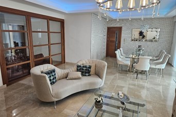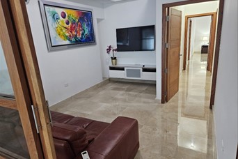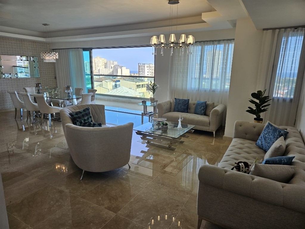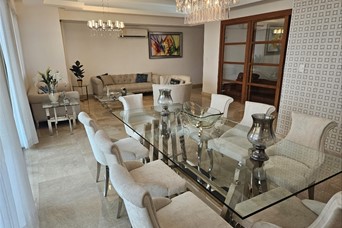 Alquilo amueblado con vista al mar en lo mejor de ??Los Cacicazgos en torre con hermosa área social. _________ ??????????????????????????: - 270 mts - 3 Habitaciones - 3.5 baños - Estudio - Área de lavado - Sala amplia - Comedor - Balcón con vista al mar - 3 Parqueos - Piso alto. __________ ?????????????????????? ?? ????????????????????: - 4 Ascensores - Planta Full - Gas común - Lobby tipo hotel - Gimnasio equipado - Terraza con bbq - Terraza destechada - Piscina de adultos - Piscina de niños - Jacuzzi - Area de infantil - Salón multiuso __________ ?? Precio $3200 US??