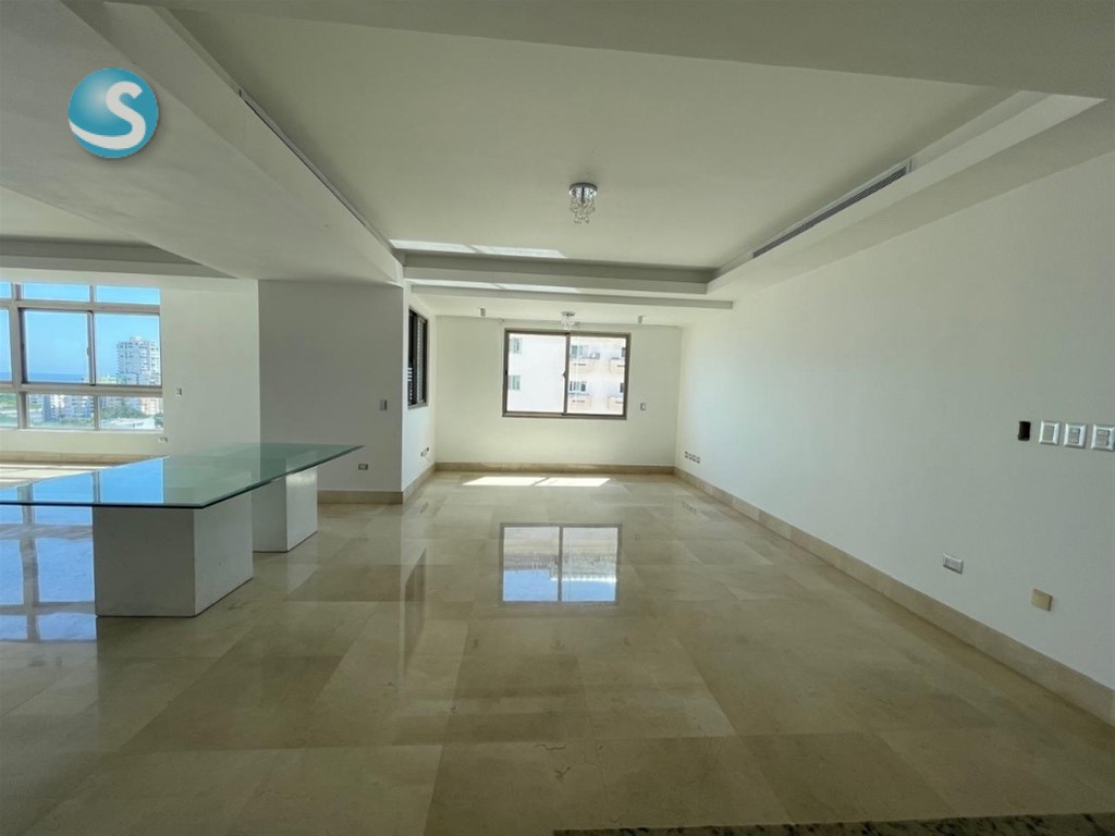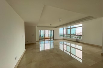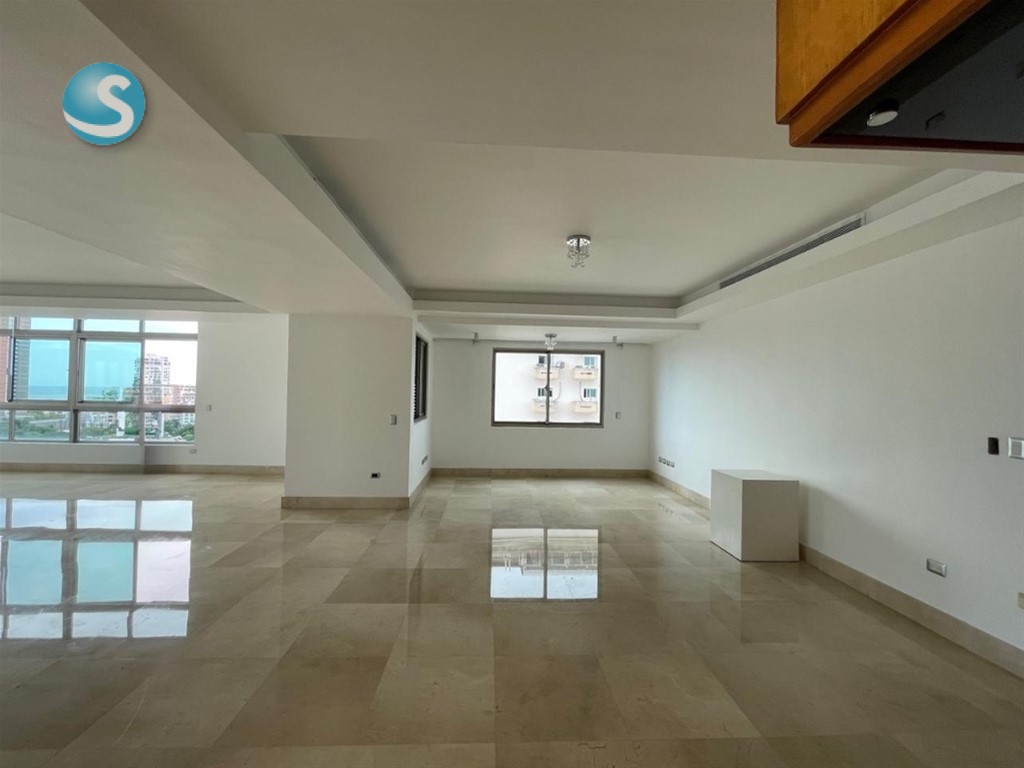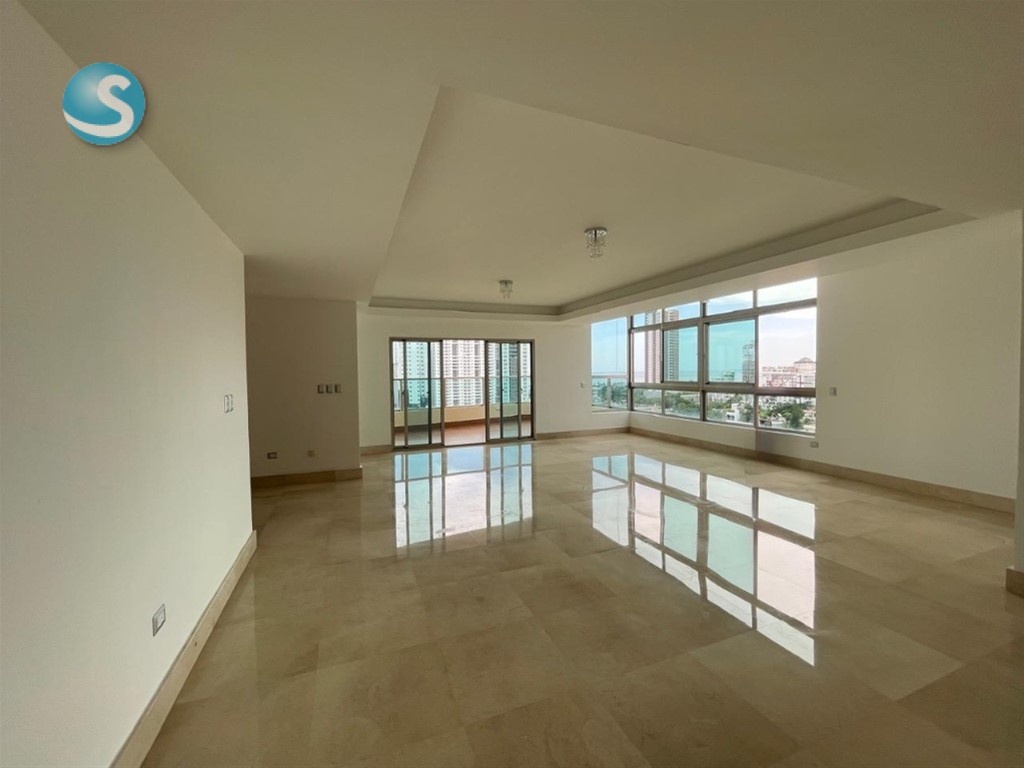 Los Cacicazgos torre familiar, solo dos aptos por nivel. Piso alto con vista al mar 335 mts 3 habitaciones con walk-in-closet y baños Dormitorio principal con balcón, walk-in closet, baño con doble lavamanos y tope en mármol. Closet para ropa blanca Medio baños para visitas Recibidor Estudio Balcón Sala Cocina fría con desayunador Cocina caliente Comedor Cuarto de servicio con su baño Área de lavado 3 parqueos techados Amenidades de la Torre: 2 ascensores Salón de eventos con terraza destechada Gimnasio Sauna Lobby climatizado Seguridad 24/7 Precio de Venta: US$825,000 Precio de Alquiler: US$3,800 Incluye; Nevera, lavadora/secadora, aire acondicionado y microondas.