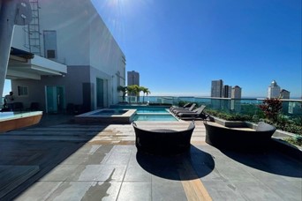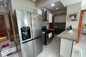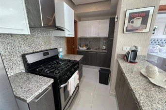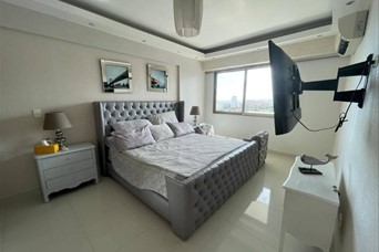 Moderno apartamento en alquiler amueblado en Cacicazgos 1 habitaciones 1.5 baños Sala Comedor Desayunador Cocina Closet de ropa blanca Balcón Área de lavado 1 parqueo techado Escalera de emergencia Terminaciones Pisos en porcelanato Madera preciosa Tope de cocina en mármol Cornisas en sheet rock Intercom Amenidades y características de la torre Portón eléctrico Ascensor Luz 24 hrs Cámaras de seguridad Planta full Área de juegos Gimnasio Piscina Salón Multiuso Lobby climatizado Terraza común Gas común Pozo Cisterna Precio de alquiler US$1,500