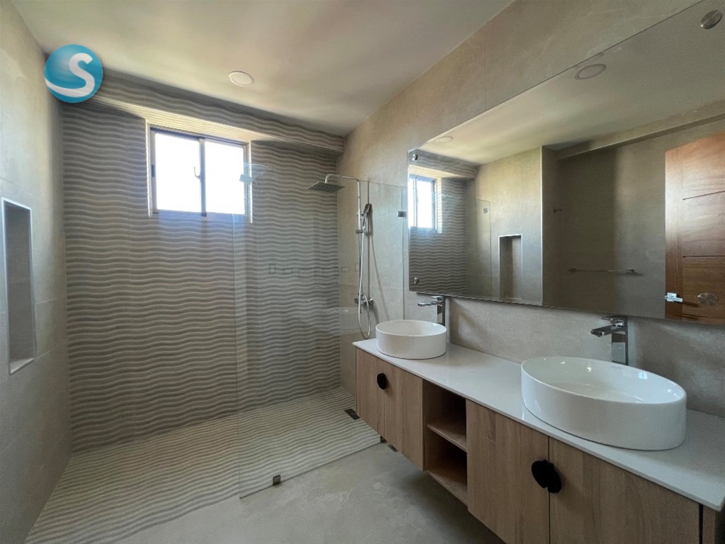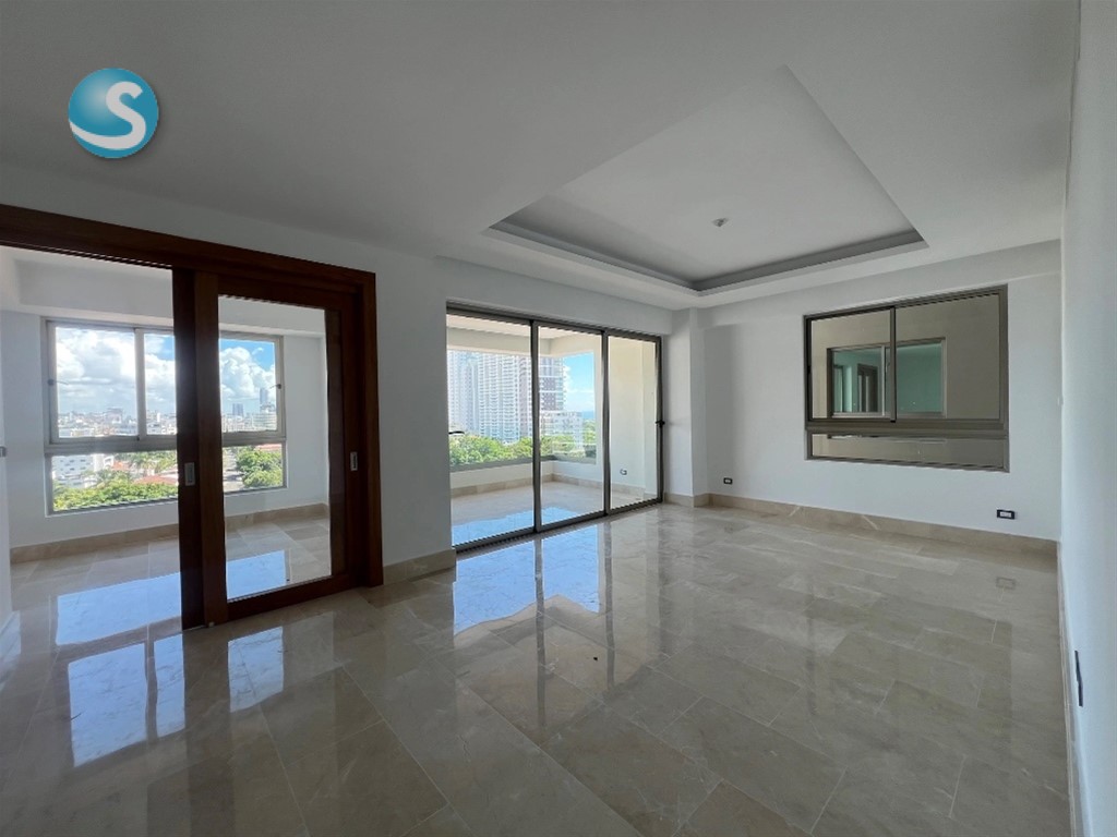 Ubicado en el prestigioso sector de Los Cacicazgos, a pocos pasos del Parque Mirador Sur, este exclusivo apartamento en alquiler ofrece una combinación perfecta de amplitud, privacidad y estilo de vida premium. Su entorno residencial, rodeado de áreas verdes y con acceso inmediato a supermercados, restaurantes y servicios esenciales, lo convierte en una de las direcciones más deseadas del Distrito Nacional. Con 220 m² de construcción, la propiedad se distingue por una distribución generosa y elegante. Cuenta con tres amplias habitaciones, cada una con su baño privado y walk-in closet, garantizando confort y privacidad para todos los miembros del hogar. A esto se suma un medio baño de visitas que aporta funcionalidad a las áreas sociales. Las zonas comunes del apartamento elevan la experiencia residencial: sala doble, comedor formal y dos family rooms, ideales para compartir, entretener o disfrutar de espacios independientes dentro del mismo hogar. La cocina fría y caliente importadas, completamente equipadas con línea blanca, combinan diseño moderno con máxima practicidad, pensadas para quienes valoran la gastronomía y el orden. Los acabados reflejan un estándar superior de calidad, con pisos de mármol en áreas sociales y habitaciones, porcelanato en baños, techos en sheet-rock y maderas preciosas que aportan calidez y sofisticación. El balcón amplio complementa el apartamento con ventilación natural y vistas agradables al entorno. La torre ofrece amenidades de primer nivel que refuerzan un estilo de vida exclusivo: lobby elegante, gimnasio completamente equipado, área social, área de juegos, picuzzi, dos ascensores, planta eléctrica full y seguridad permanente. Además, la propiedad incluye tres parqueos techados y un locker, brindando comodidad y organización. Una opción ideal para quienes buscan alquilar en una de las zonas más valoradas de Santo Domingo, con espacios amplios, terminaciones de lujo y una ubicación que combina naturaleza, exclusividad y conectividad. ID: 46628