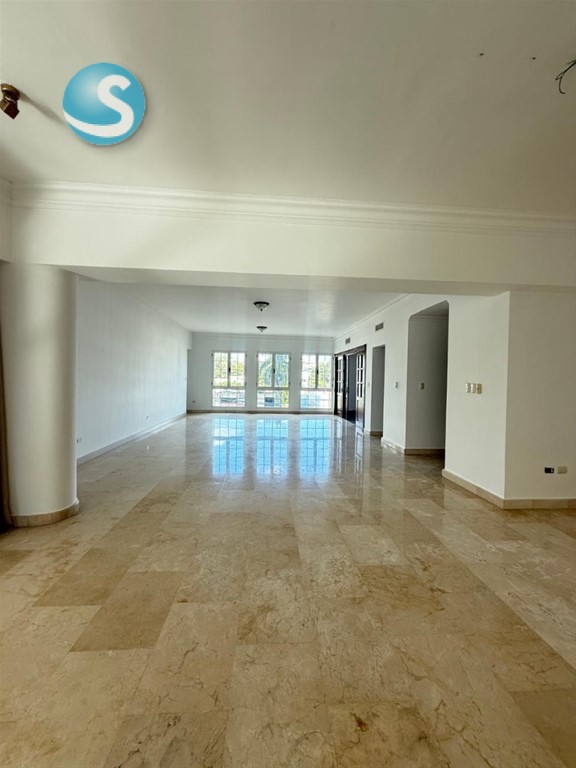 CARACTERISTICAS GENERALES Sector: Los Cacicazgos 300 mts2 Netos 3 habitaciones c/u con WC y Baños Baño de Visitas Balcón en la Habitacion Principal Balcón en Habitacion secundaria Estudio Sala Comedor Cocina fría Cocina caliente Amplia Area de lavado Habitación de Servicio c/bano 2 parqueos continuos Locker Ascensores (2) Ascensor de servicio (1) Lobby doble altura climatizado Salón para choferes Salón Multiusos Playground climatizado para niños PRECIO DE VENTA: US$375,000