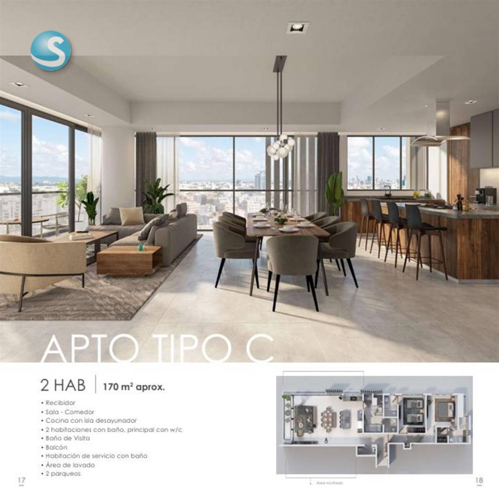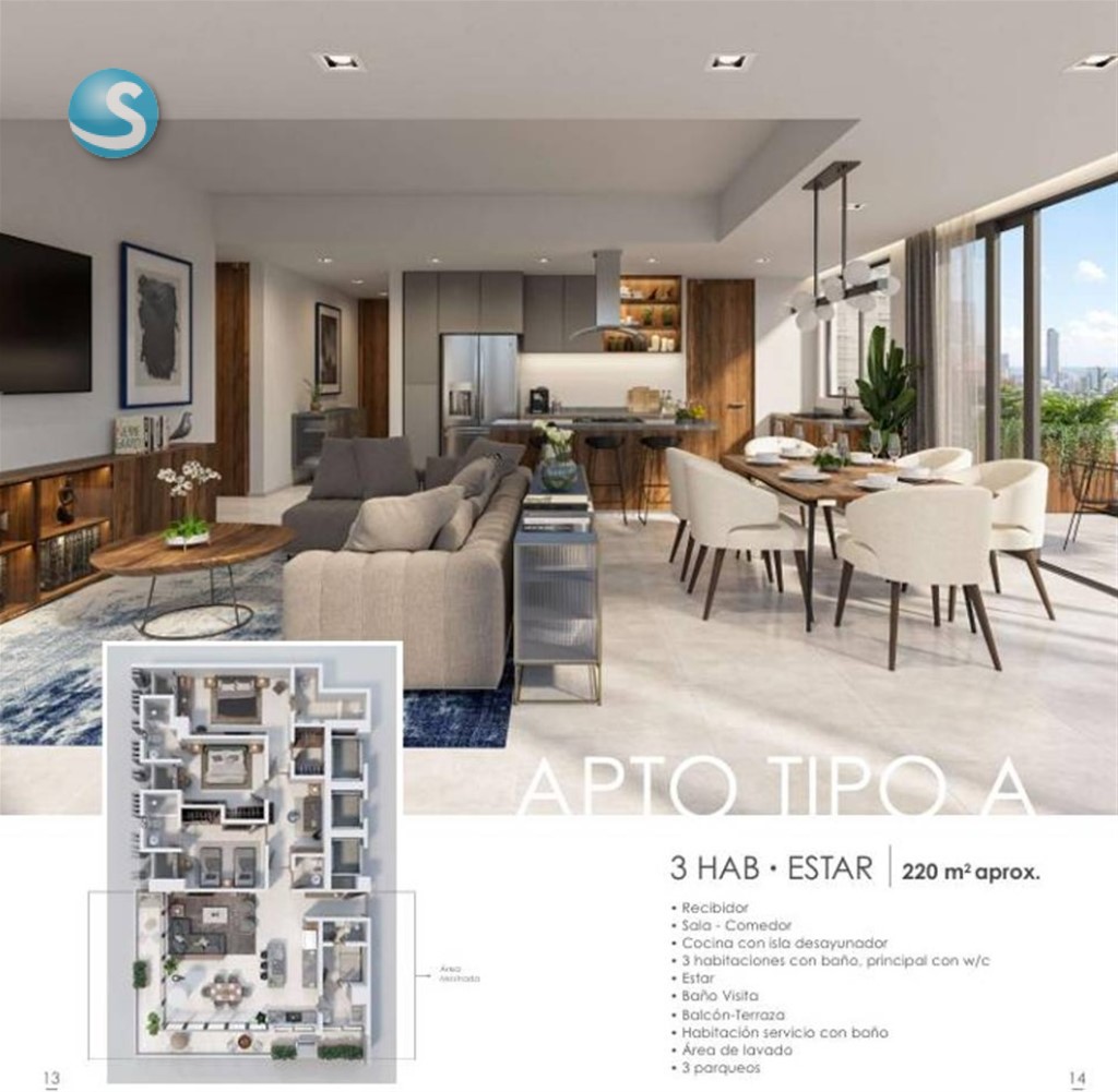 Apartamentos residenciales de alto nivel, concebidos para quienes valoran el diseño contemporáneo, la privacidad y una ubicación privilegiada al sur de la ciudad. Este exclusivo desarrollo ofrece unidades amplias de 2 y 3 habitaciones, con metrajes aproximados desde 170 m² hasta 220 m², distribuidas en espacios abiertos que integran sala, comedor y cocina con isla desayunador, maximizando la luz natural, la ventilación cruzada y las vistas panorámicas hacia la ciudad, el Parque Mirador Sur y el mar. Cada apartamento ha sido diseñado con un enfoque en confort y funcionalidad, incorporando: Habitaciones con baño privado y walk-in closet en la principal Balcones y terrazas que amplían el área social Área de lavado y habitación de servicio 2 y 3 parqueos según tipología Las terminaciones reflejan un estándar superior: Pisos en mármol Cocinas modulares contemporáneas Baños en porcelanato de diseño Puertas en madera natural Ventanales y barandas en aluminio Video portero y sistemas de seguridad El proyecto se complementa con amenidades tipo resort en el último nivel, pensadas para el disfrute de toda la familia: Piscina infinita con solárium y áreas de descanso Terraza con bar y área BBQ Gimnasio equipado con ring de boxeo Salón multiuso y cine privado Área infantil (Kids Club) El acceso se realiza a través de un lobby climatizado estilo hotel, con valet parking, control de acceso, seguridad 24/7 y elevadores de uso general y de servicio. Una propuesta residencial que combina elegancia, amplitud, vistas y calidad de vida, en una de las zonas más cotizadas y residenciales de Santo Domingo. ================================================= High-end residential apartments, thoughtfully designed for those who appreciate contemporary architecture, privacy, and a prime location in the southern area of the city. This exclusive development features spacious 2- and 3-bedroom apartments, with approximate sizes ranging from 170 m² to 220 m², offering open-concept layouts that seamlessly integrate living, dining, and modern kitchens with breakfast islands. Large windows and terraces enhance natural light, cross ventilation, and panoramic views of the city, Mirador Sur Park, and the ocean. Each residence is crafted to deliver comfort and functionality, featuring: En-suite bedrooms with walk-in closet in the master bedroom Private balconies and terraces extending the living areas Laundry area and service room 2 or 3 parking spaces depending on the unit type Premium finishes include: Marble flooring throughout Contemporary modular kitchens Designer porcelain bathrooms Natural wood doors Aluminum windows and railings Video intercom and security systems Residents enjoy resort-style amenities on the top level, designed for relaxation and entertainment: Infinity pool with sun deck and lounge areas Terrace with bar and BBQ area Fully equipped gym with bo