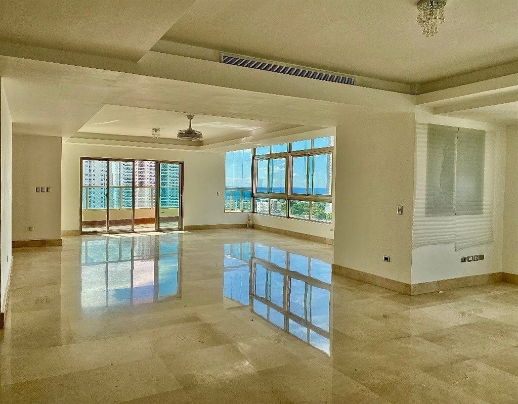 Impresionante apartamento de lujo ubicado en uno de los sectores más exclusivos de Santo Domingo, Los Cacicazgos. Diseñado con amplios espacios y acabados de alta calidad, esta propiedad ofrece el equilibrio perfecto entre confort, elegancia y privacidad, acompañado de una hermosa vista al mar. Distribución del apartamento • 3 habitaciones, cada una con walk-in closet • 3.5 baños • Amplio balcón con vista al mar • Estar • Sala • Comedor • Cocina fría • Cocina caliente • Área de lavado • Cuarto de servicio con su baño • Acceso independiente para empleados Amenidades del edificio • Lobby climatizado y elegantemente decorado • Ascensor de lujo • Sistema de cámaras de seguridad • Seguridad 24/7 • Pozo de agua • Planta eléctrica full Áreas sociales • Salón de eventos • Gimnasio totalmente equipado • Área de BBQ • Área de juegos para niños • Áreas sociales con baños Parqueos • 3 parqueos techados Precio de alquiler: 3,800 Sector: Los Cacicazgos Metraje: 336 metros Contáctanos: Anabel Castillo Cell: (809) 906-3126