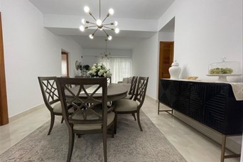 Cacicazgos ???? Amueblado Completo - Torre de Lujo 122 Metros Piso 2 Balcón amplio Shutters en todas las ventanas y balcón 2 Habitaciones cada una con su baño y closets Baño de visita Sala Comedor Cocina con Desayunador Area de Lavado Cuarto de Servicio con Baño 2 parqueos paralelos Locker Amenidades Torre: Lobby de Lujo - amueblado y climatizado Salón de eventos Área de niños Gimnasio totalmente equipado Piscina Infinity Área de BBQ Sauna Precio de Venta Amueblado: US$285,000 Alquiler amueblado Mensual: USD$1,800