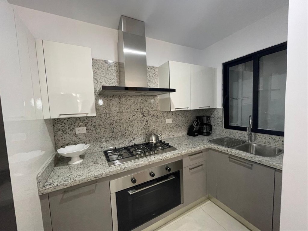 Cacicazgos Amueblado Completo - Torre de Lujo 122 Metros Piso 2 Balcón amplio Shutters en todas las ventanas y balcón 2 Habitaciones cada una con su baño y closets Baño de visita Sala Comedor Cocina con Desayunador Area de Lavado Cuarto de Servicio con Baño 2 parqueos paralelos Locker Amenidades Torre: Lobby de Lujo - amueblado y climatizado Salón de eventos Área de niños Gimnasio totalmente equipado Piscina Infinity Área de BBQ Sauna Precio de Venta Amueblado: US$285,000 Alquiler amueblado Mensual: USD$1,800