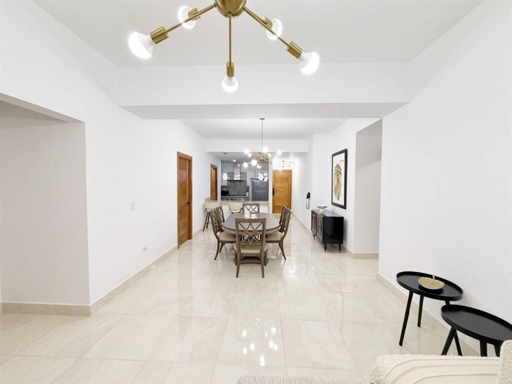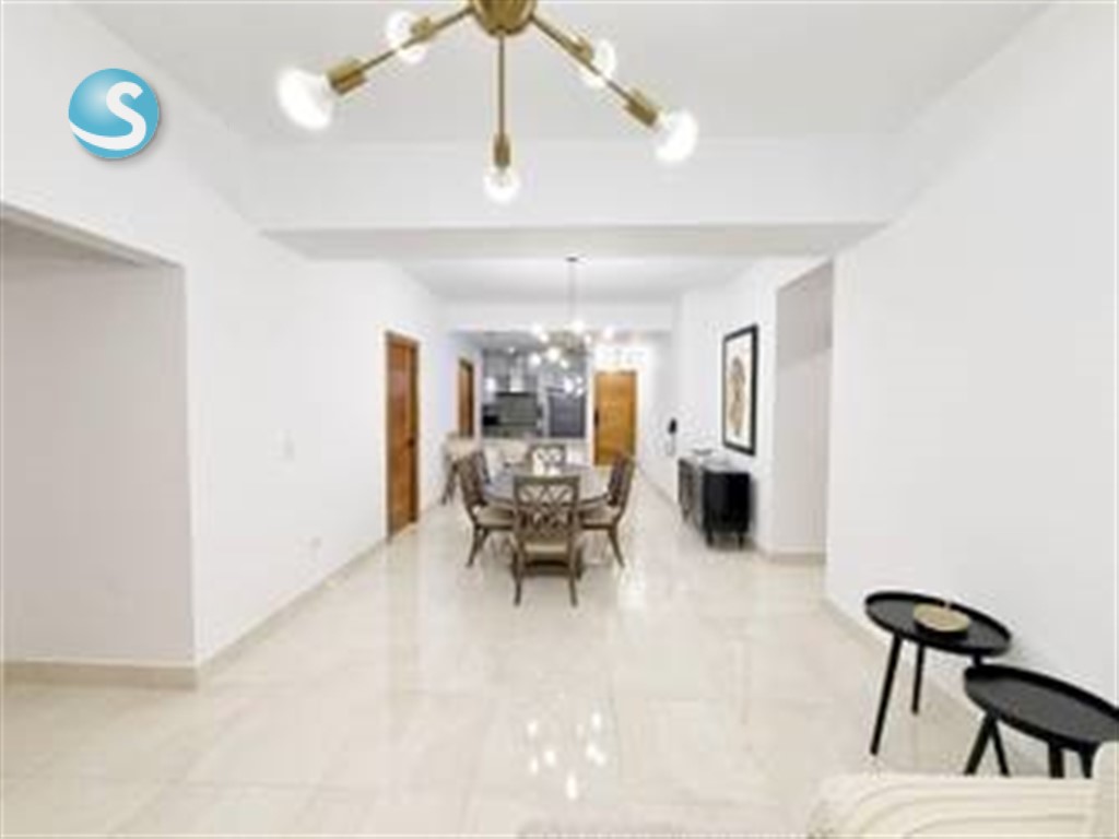 Descripción Venta o alquiler de moderno apartamento en Los Cacicazgos Características 2 habitaciones (principal con wc) 2.5 baños Cocina Amplia sala Comedor Balcón Área de lavado Cuarto de servicio 2 parqueos paralelos Características de la Torre: Lobby amueblado y climatizado 2 Ascensores Piscina con BBQ 2 Saunas Gimnasio equipado Salón de eventos Área de niños Planta Eléctrica Full Gas común Intercom Portero Portón eléctrico Seguridad 24 Horas Precio de alquiler amueblado: US$ 1,800 Precio de venta: US$ 285,000 GAB. E.