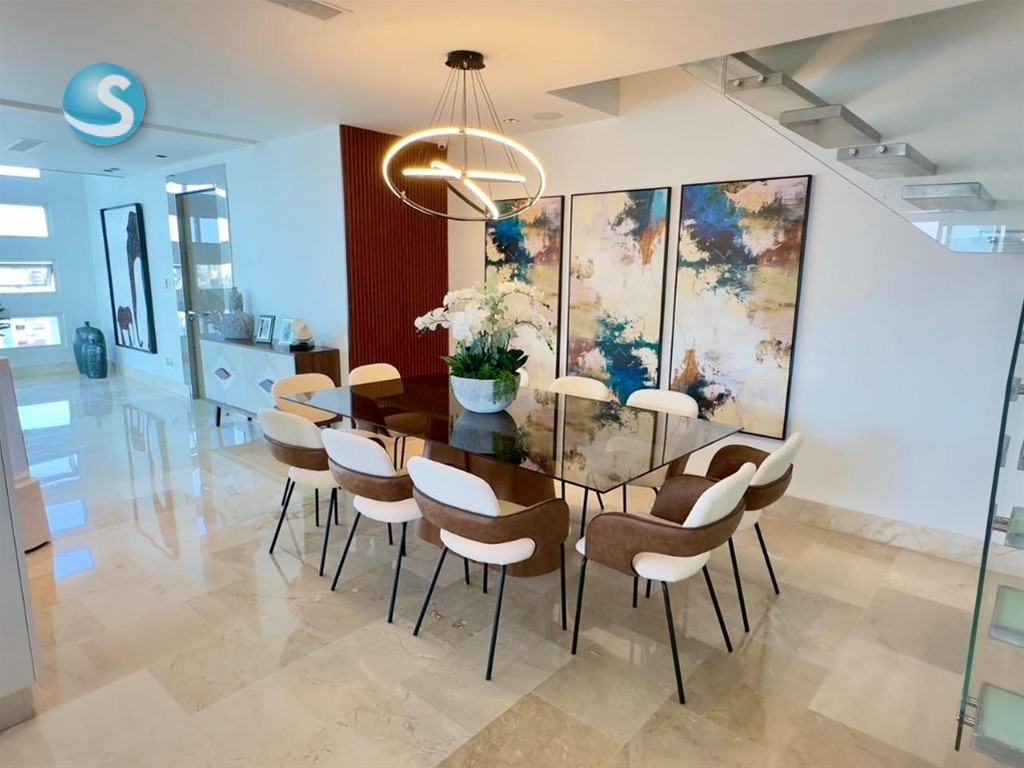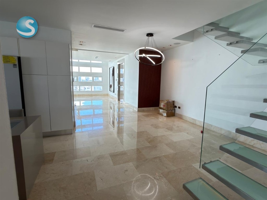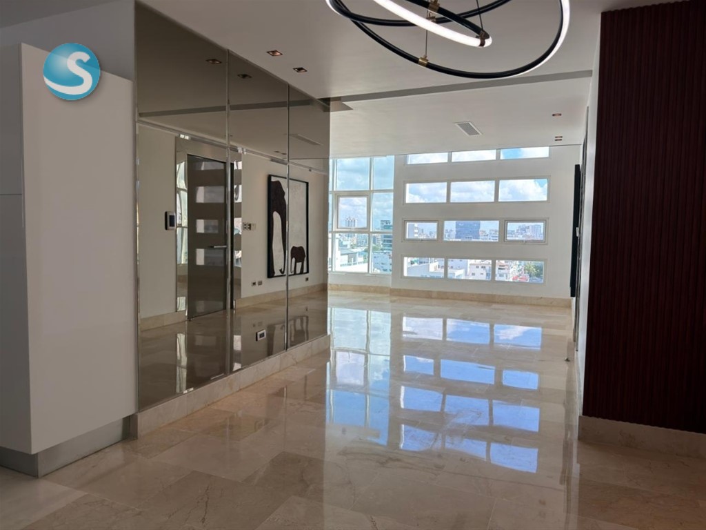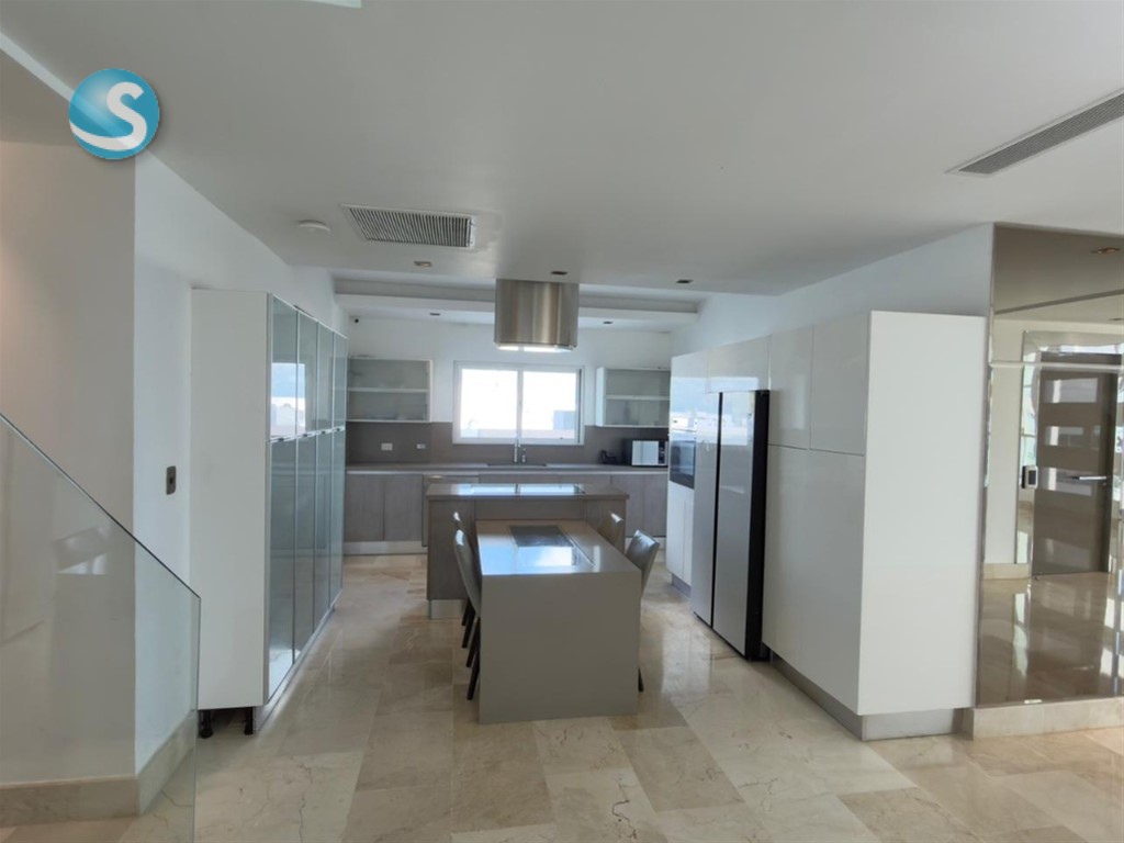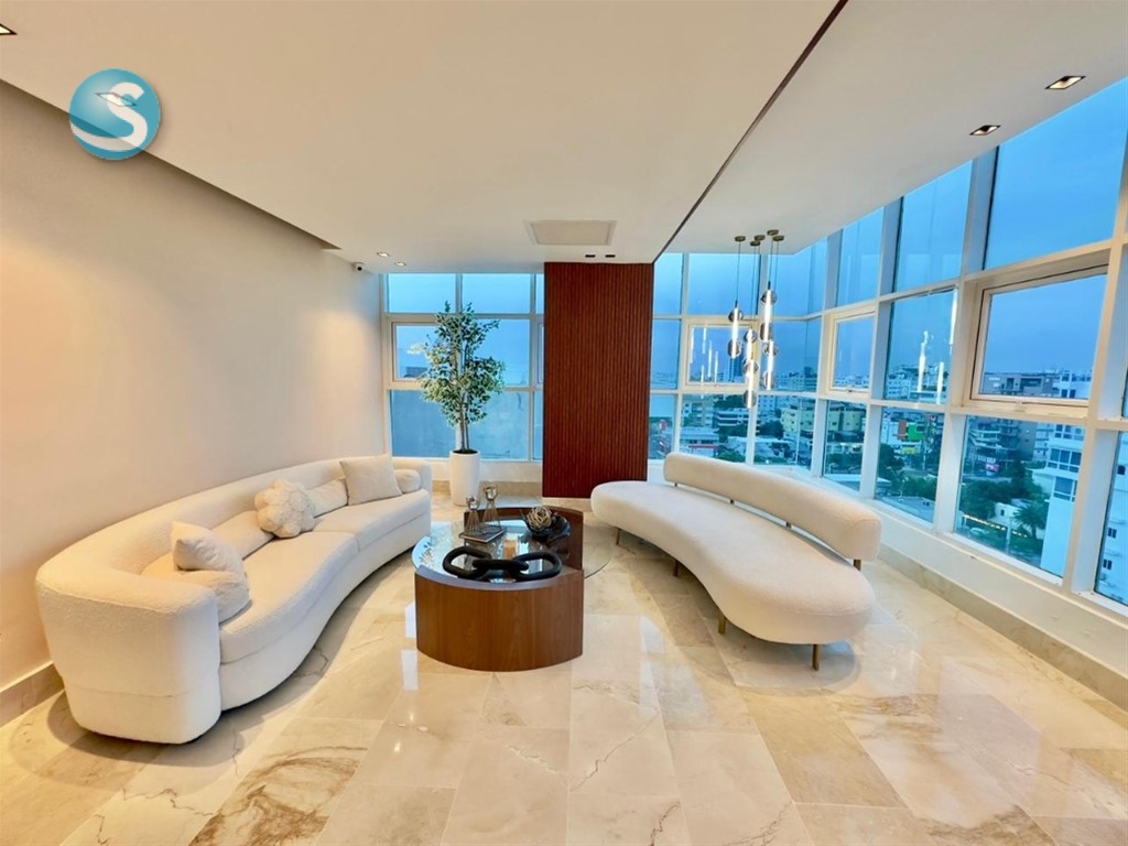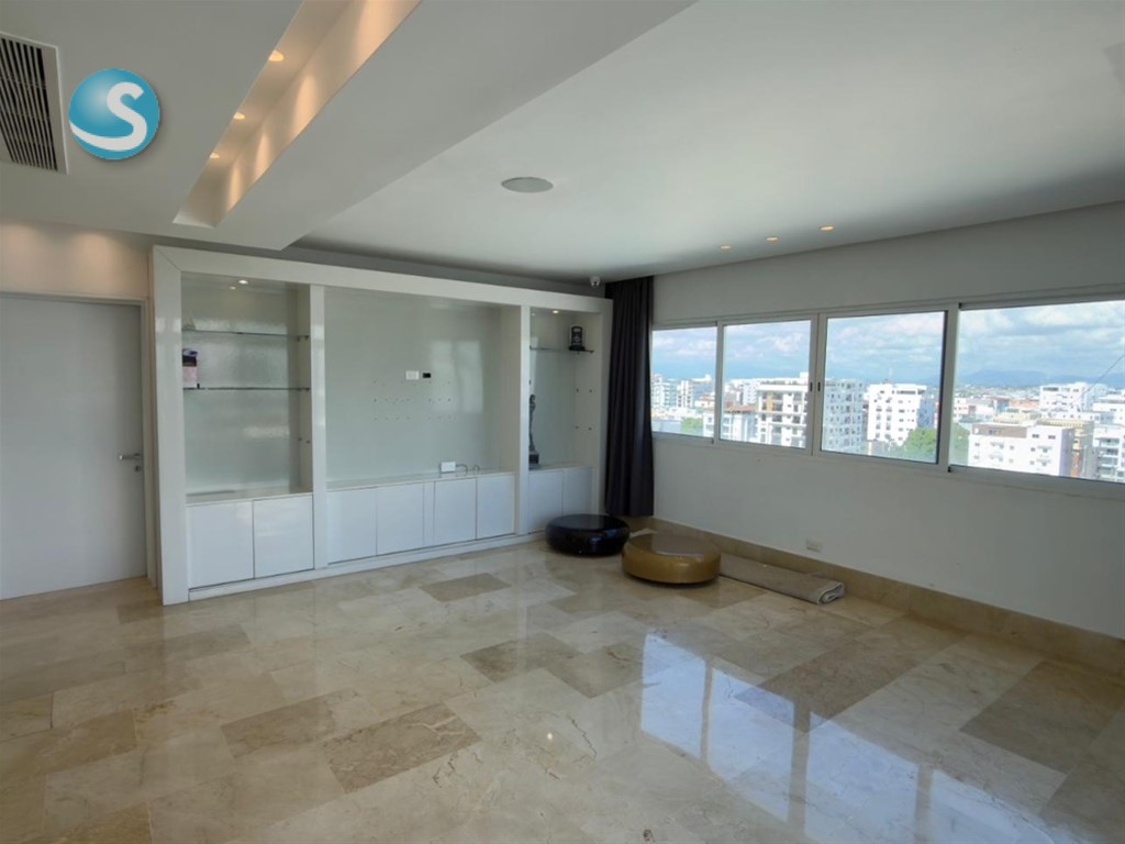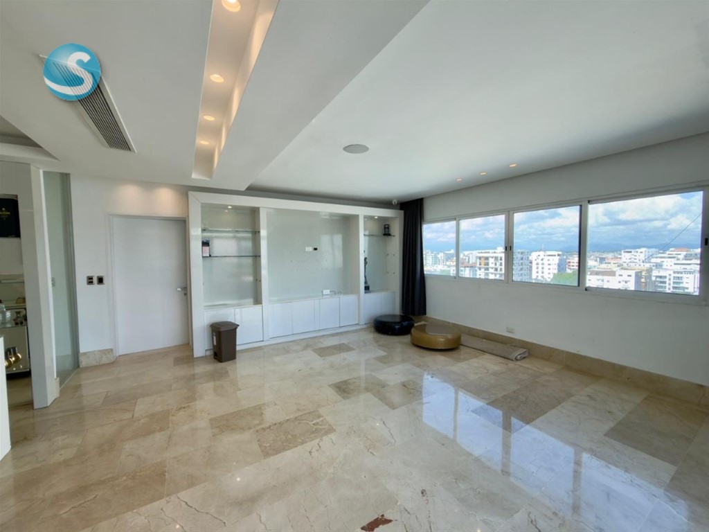 Los Cacicazgos Penthouse exclusivo de 460 metros 1er Nivel 2 habitaciones con sus baños y walking closets Estudio Impresionante sala con cristales de piso a techo Comedor súper amplio Cocina con Isla y comedor incluido, equipada con electrodomésticos Smeg. Cocina caliente Cuarto de servicio Baño para visitas 2do Nivel Habitación principal gigante con walking closet super grande. Family room con bar incluido Amplia terraza El ascensor llega directo al segundo nivel. 3er nivel Amplios espacios Habitación de huéspedes Espacio para gimnasio equipado con bocinas Espacio para sauna si así lo desean Espacio abierto con instalaciones para jacuzzi Sistema de bocinas Sonos en todo el Penthouse Área de cámaras y controles Sistema de aire central en primer y segundo nivel 3 parqueos 2 amplios lockers Torre cuenta con: Ascensor Lobby Área de chóferes Seguridad Precio de venta: US$680,000 Mantenimiento: RD$20,000