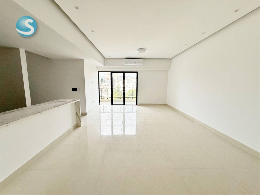 RENTA de moderno apartamento con línea blanca en Los Cacicazgos Características 125mt2 neto piso alto Nuevo a estrenar Línea blanca incluida y aires acondicionados 2 habitaciones (con wc y baño) 2.5 baños Cocina con tope en cuarzo Amplia sala Comedor Balcón con vista despejada Área de lavado Cuarto de servicio 2 parqueos paralelos Características de la Torre: Lobby amueblado y climatizado 2 Ascensores Piscina con BBQ 2 Saunas Gimnasio equipado Salón de eventos Área de niños Planta Eléctrica Full Gas común Intercom Portero Portón eléctrico Seguridad 24 Horas Precio de alquiler: US$ 2,000 GAB. E.