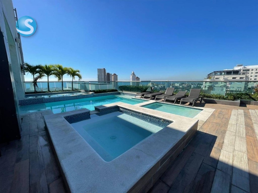 Alquiler de piso alto en Cacicazgos Piso 13 132.44 mts Línea blanca 2 habitaciones 2.5 baños Sala Comedor Cocina Balcón Área de lavado Habitación de servicio 2 parqueos techados Terminaciones Pisos en porcelanato Madera preciosa jambas Tope de cocina en mármol Cornisas en sheet rock Intercom Amenidades y características de la torre Portón eléctrico 4 ascensores Luz 24 hrs Cámaras de seguridad Planta full Área de juegos Gimnasio Piscina Salón Multiuso Lobby climatizado Terraza común Gas común Pozo Cisterna Precio de alquiler US$1,500 JOS. M (COCO)