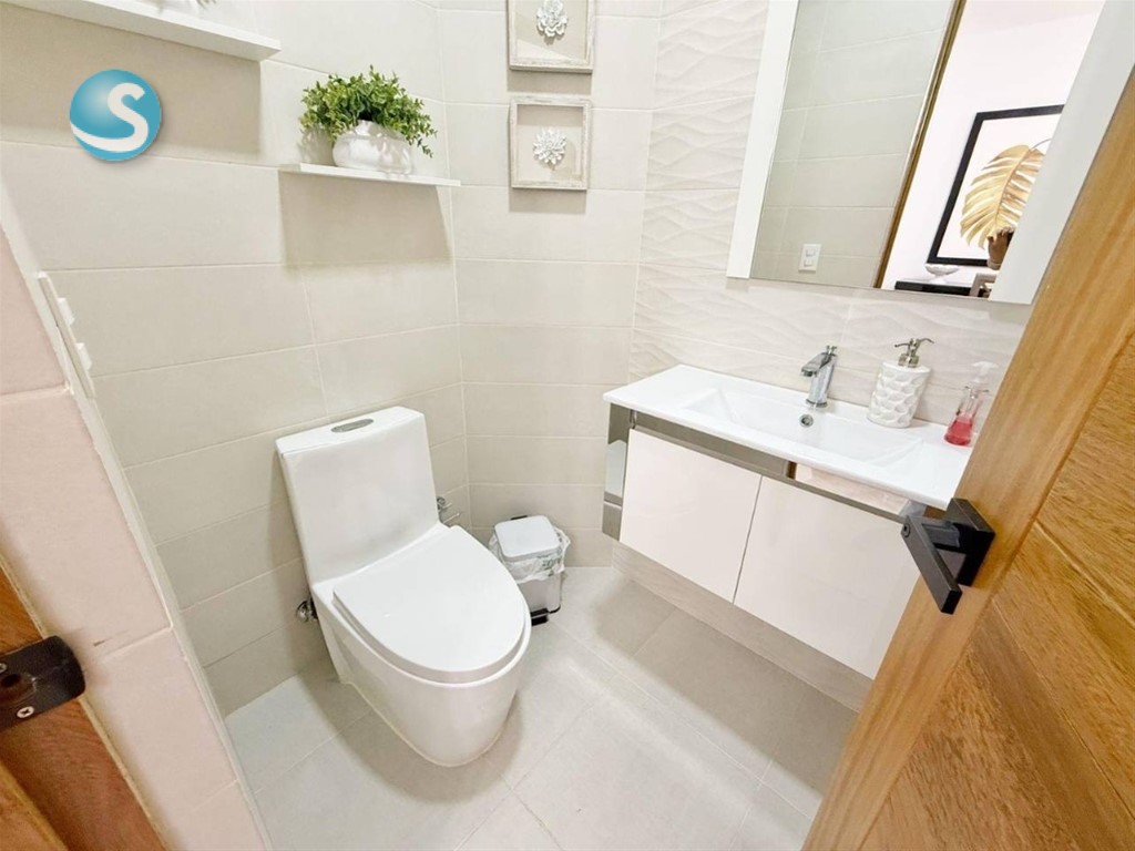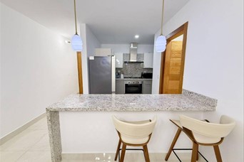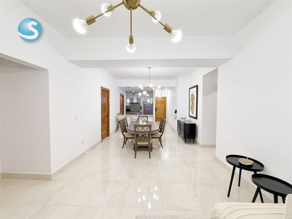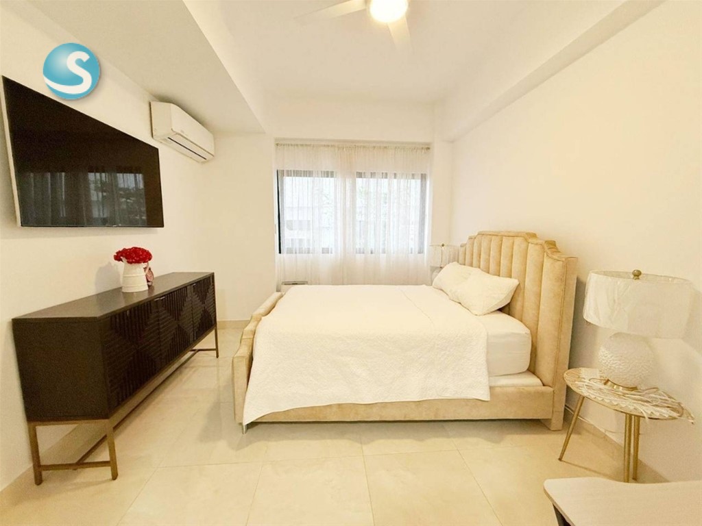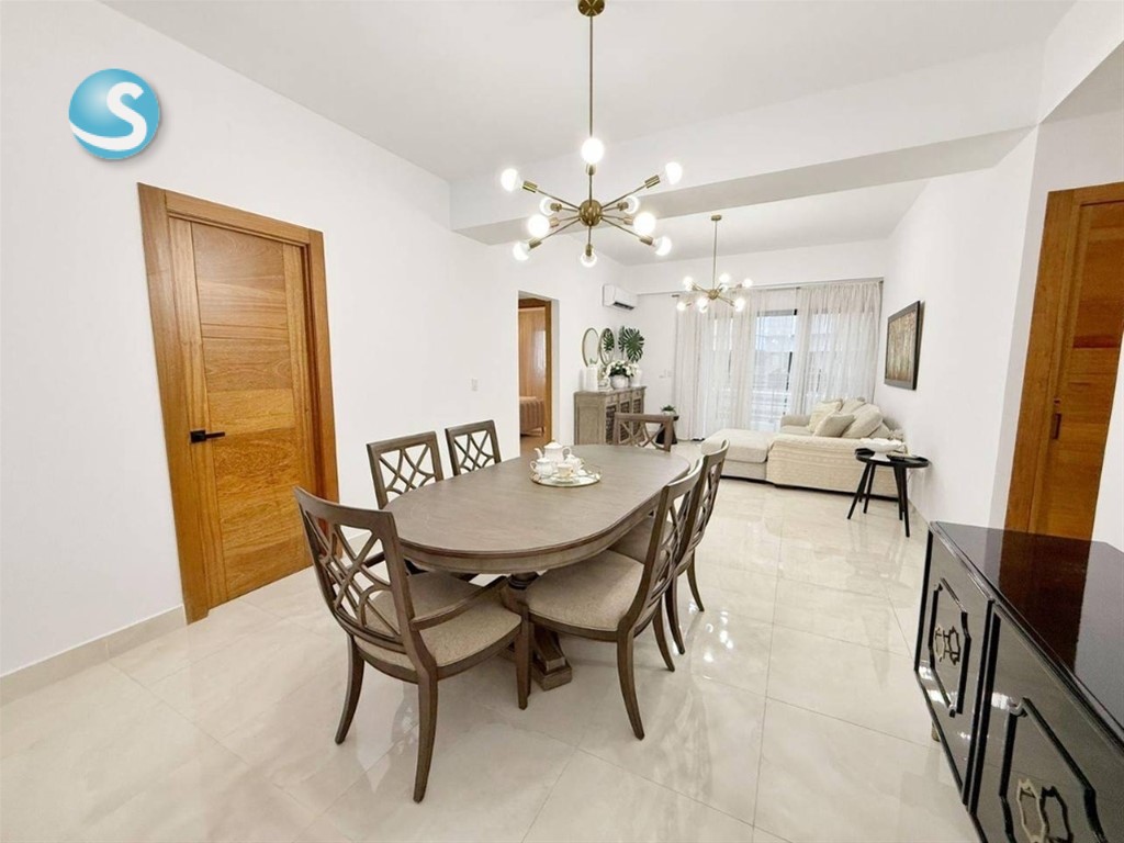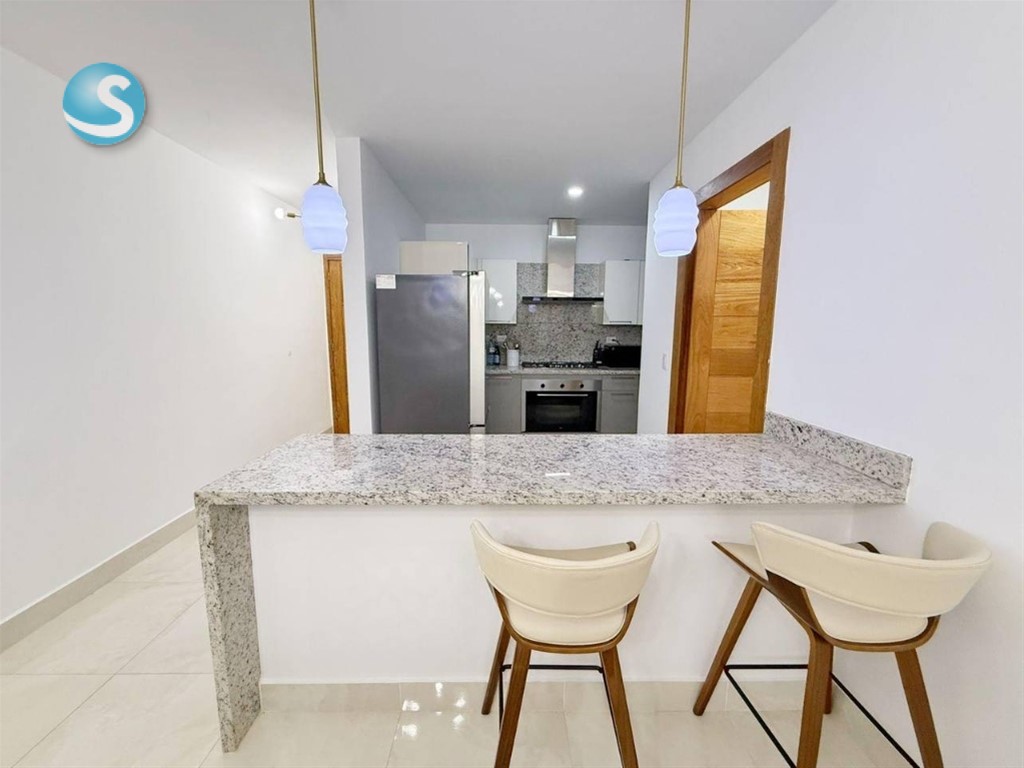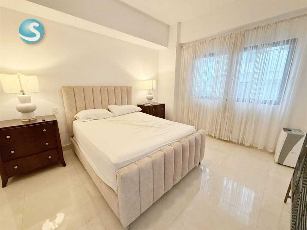 Venta o alquiler de moderno apartamento en Los Cacicazgos Características 2 habitaciones (principal con wc) 2.5 baños Cocina Amplia sala Comedor Balcón Área de lavado Cuarto de servicio 2 parqueos paralelos Características de la Torre: Lobby amueblado y climatizado 2 Ascensores Piscina con BBQ 2 Saunas Gimnasio equipado Salón de eventos Área de niños Planta Eléctrica Full Gas común Intercom Portero Portón eléctrico Seguridad 24 Horas Precio de alquiler amueblado: US$ 1,800 Precio de venta: US$ 285,000 GAB. E.