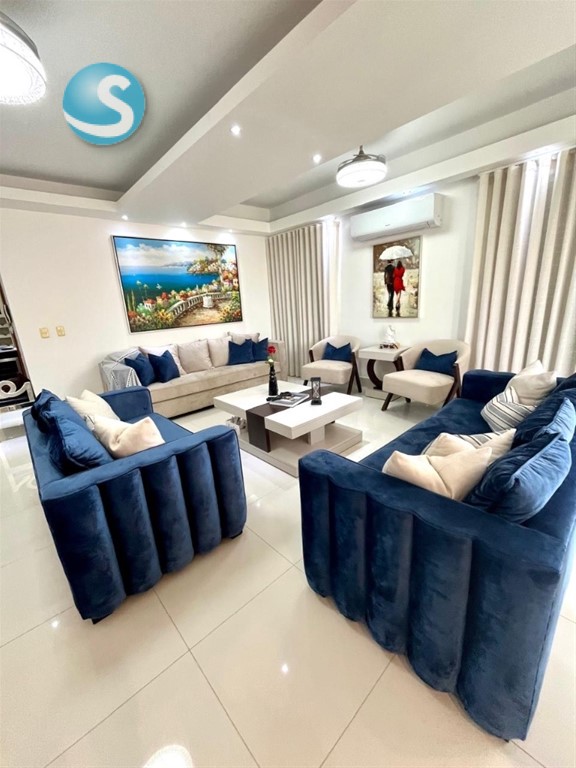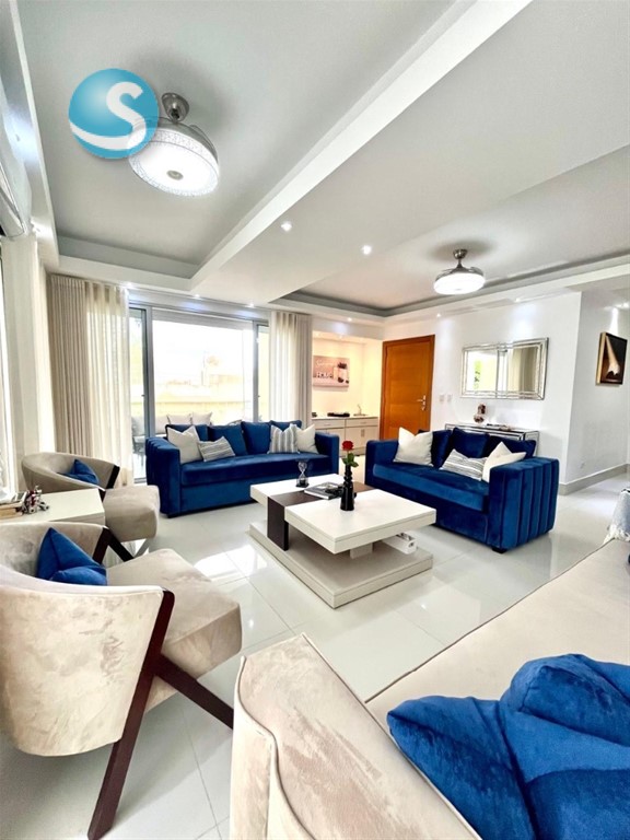 Agente: Sr. Mayka Estrella Contacto: 849-856-5217 / 829-641-3978 Propiedad: Apartamento Sector: Los Cacicazgos Ciudad: Santo Domingo de Guzmán Metraje: 246.00 Mts² Precio de Venta: US$ 415,000.00 Mantenimiento: RD$ 11,400.00 ** Hermoso Apartamento Moderno ** Iluminado** increíble vista al mar ***Estudio**Family Rom Características del Apartamento: * 3 Habitaciones con sus baños y W/C * 1.5 Baño de visita * Área de lavado * Estudio * Estar * Cuarto de servicio * Sala * Cocina modular * Comedor * Desayunados * Balcón * 2 Parqueos paralelos y techados * 2 Ascensores * 1 Ascensor de cargas Características de la Torre: * Recibidor * Estar familiar * Áreas sociales de última generación en el piso * Gimnasio * Cine * Gazebo * Área infantil * 2 Salones multiuso * Jacussy * 2 Plantas eléctricas full * Ducto de basura * Control de acceso * Cisterna * Agua potable * Seguridad 24/7