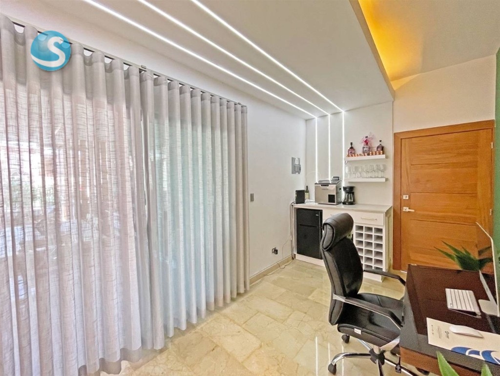 Majestuoso Penthouse en venta ubicado en Los Cacicazgos 266.67 mts2 2 NIVELES Piso 5 y 6 Ascensor con acceso a los dos niveles 3 habitaciones 3.5 baños Sala Comedor Cocina Tope en cuarzo Habitación de servicio con su baño Pisos en mármol Estar tipo oficina. Terraza techada Picuzzi Área BBQ 3 parqueos CARACTERISTICAS DEL RESIDENCIAL Ascensor Lobby climatizado Área común con jacuzzi Plata full Portón eléctrico Seguridad 24/7 Precio de venta amueblado US$ 430,000 Precio de venta vacio $400,000 Mantenimiento RD$18,600