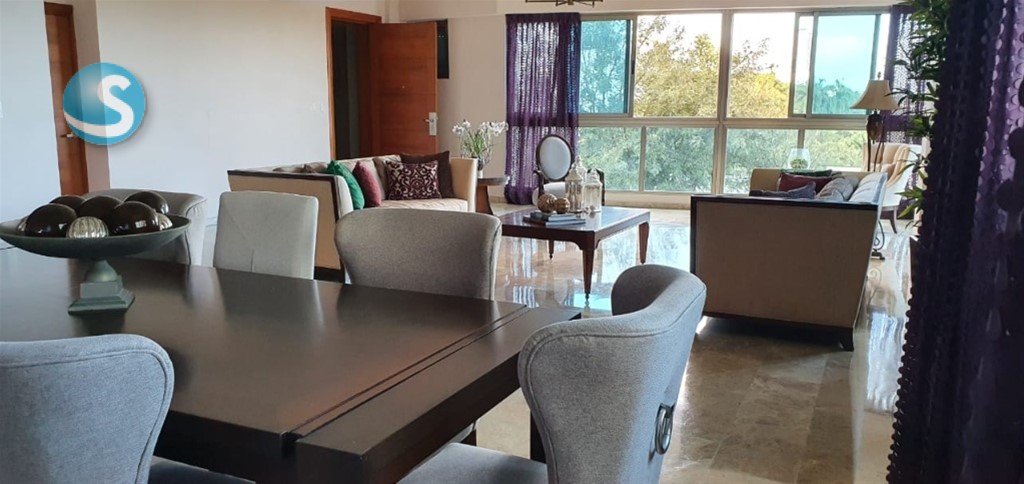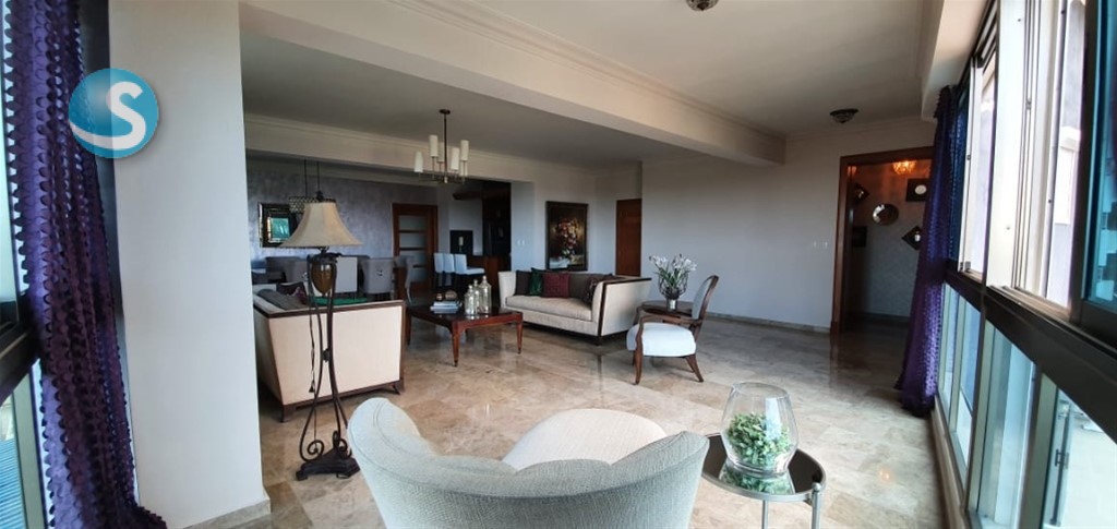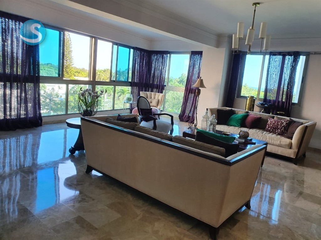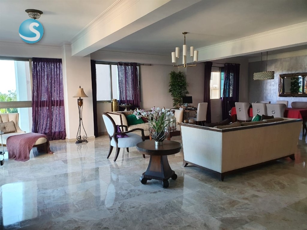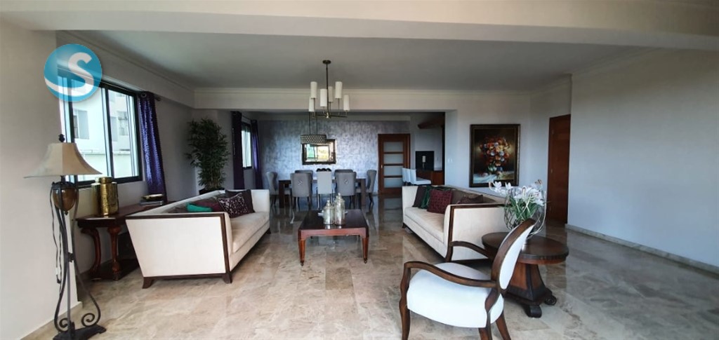 Sector Los Cacicazgos Características del apartamento 3 habitaciones con sus baños Habitación de servicio Área de lavado Recibidor En 3er piso, con 272.57 mts 3 parqueos Locker Pisos en mármol Maderas en roble Jacuzzi ½ baño de visita Características de la torre: 15 niveles, 2 apartamentos p/p 11 años construida Área social e infantil Lobby Gym Piscina 3 Ascensores Cine Mantenimiento:RD$18,500.00 Pereció de venta: UD$540,00