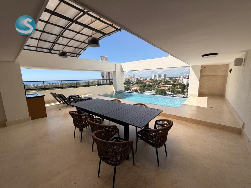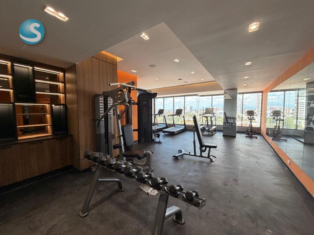 Apartamento en alquiler A ESTRENAR en Los Cacicazgos, Santo Domingo. Cuenta con 1 habitación mas estudio 2do nivel con ascensor 85,90 m² de área construida 103.90 m de solar 1 baño completo 1 medio baño 1 parqueo Area de lavado Locker La torre cuenta con Lobby Area de choferes Area infantil Gimnasio Piscina Bar Alquiller US$1,400 CON MANTENIMIENTO INCLUIDO