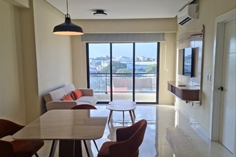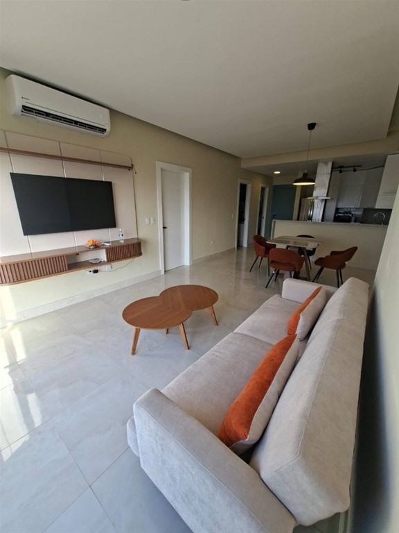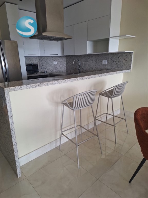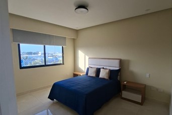 Se alquila apartamento amplio de 1 habitación completamente amueblado en Los Cacicazgos de 74 metros. Incluye línea blanca, dos aires acondicionados, lavaplatos, televisor, torre de lavadora/secadora entre otros detalles. 1 parqueo techado. Mantenimiento incluido. El edificio tiene: piscina, área social, gimnasio, área infantil y salón de eventos.