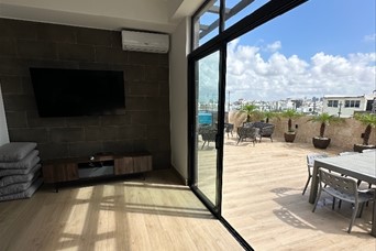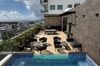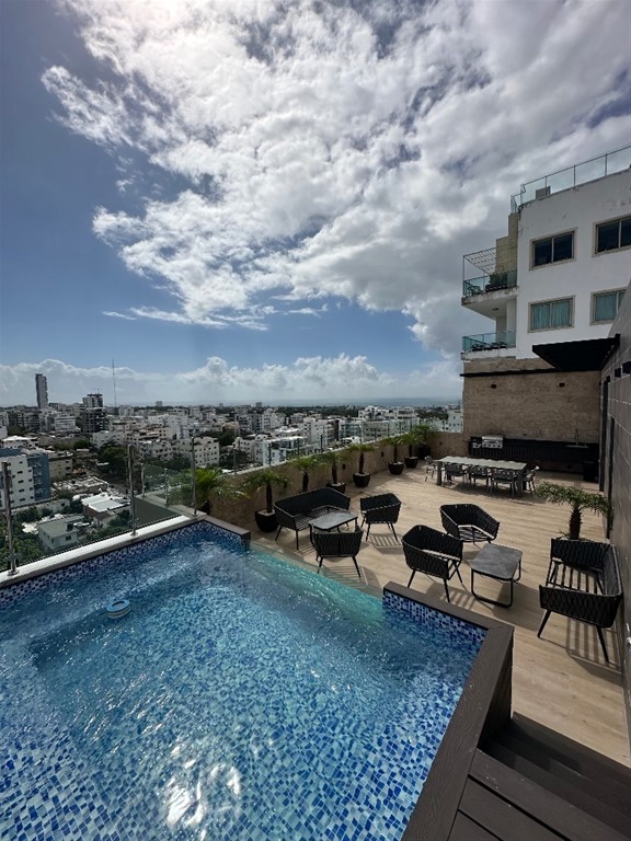 Moderno Apartamento Amueblado de 1 HAB en Cacicazgos, Santo Domingo 1 Habitación con Baño y Closets Cocina Abierta Balcón Integrado Sala / Comedor Area de Lavado La Torre Posee Piscina, Gimnasio, Area de Reuniones y Más. Alquiler US$1100 Amueblado Internet incluido