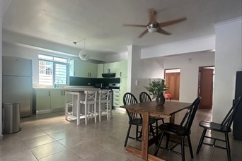 Apartamento en Los Jardines del Sur A pocos metros del Parque Mirador Sur 120 m² Totalmente amueblado Distribución: • 2 habitaciones • 2 baños remodelados • Sala–comedor integrados • Cocina moderna totalmente equipada • Área de servicio • 1 parqueo Detalles del edificio y equipamiento: – 3er nivel (sin ascensor) – Cámaras de seguridad – Gas común – Agua permanente – Inversor con baterías de gel – Detectores de humo y monóxido – Preferible sin mascotas