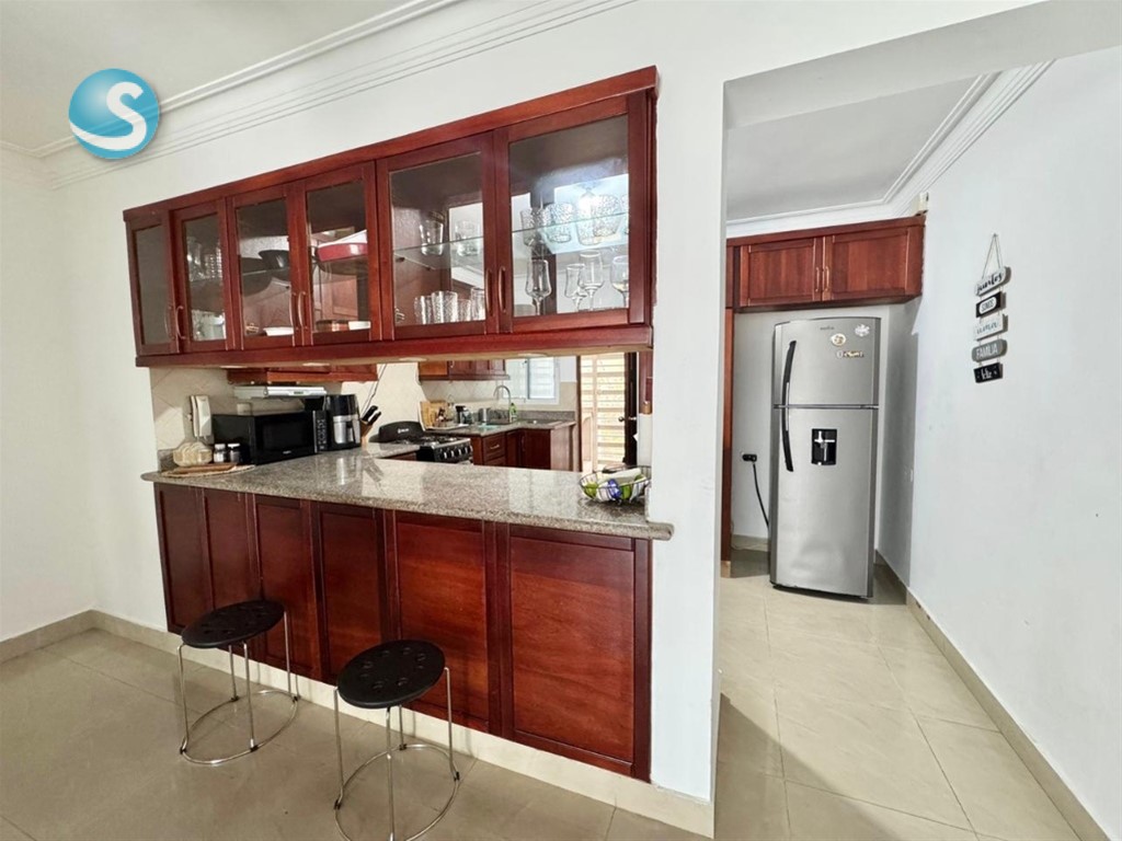 Apartamento en Venta en Jardines del Sur Piso 2 Características del apartamento: 2 habitaciones 2 baños Sala Cocina Desayunador Despensa Balcón Amplia terraza Comedor Área de lavado Clóset 1 parqueo Terminaciones: Pisos en porcelanato Cocina en madera preciosa Tope de granito natural Puertas en madera (pino, caoba o roble) Ventanas de aluminio y vidrio Techos en hormigón armado Plafones en PVC Áreas comunes: Cisterna Cámara CCTV Intercom Portón eléctrico Gas común Pozo de agua Escaleras Área social Precio: RD$11,700,000 Información y contacto: María Canchica 809-995-5805 849-273-5805