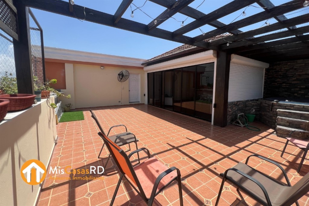 Penthouse en alquiler en Los Prados 248m² de puro confort 3 habitaciones 2.5 baños 2 parqueos techados e independientes Sala y comedor Área de lavado Cuarto de servicio Balcón integrado Terraza destechada + techada Jacuzzi para relajarte Gas común con medidor Conserje Portón eléctrico Mantenimiento incluido RD$80,000 ¡Vive con estilo y comodidad en el corazón de Los Prados!