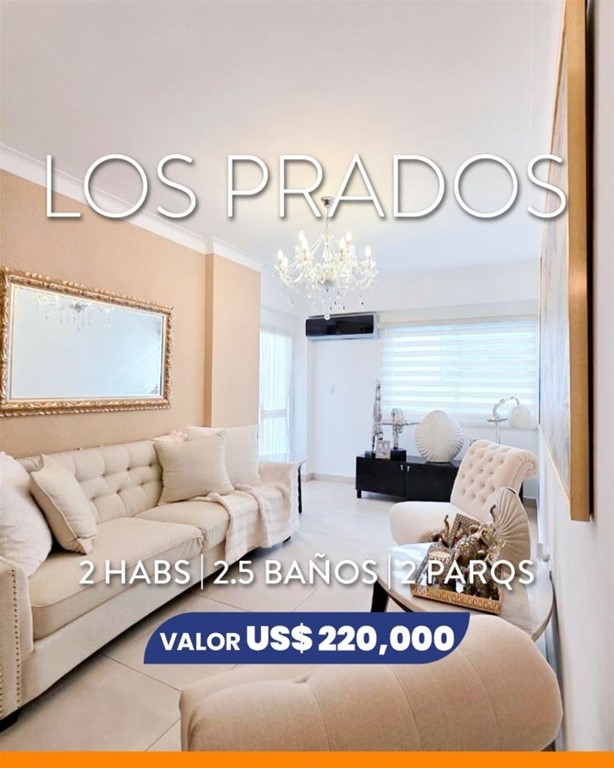 Apartamento de 2 habitaciones en Los Prados Características: 110 m² de apartamentos 2 habitaciones 2 baños 1 Baño de visita Sala Cocina Comedor Balcon 2 parqueos Cuarto de servicio Mantenimiento: RD$ 10,900 Cercanía a todo lo importante Tienes a minutos: Supermercados Restaurantes y cafés Bancos y farmacias Centros comerciales Espacios amplios, iluminados y con una atmósfera elegante y acogedora. Ubicación céntrica y de alta demanda, ideal para vivir o invertir. Confort, estilo y excelente valorización en una sola propiedad.