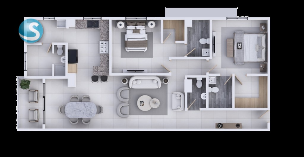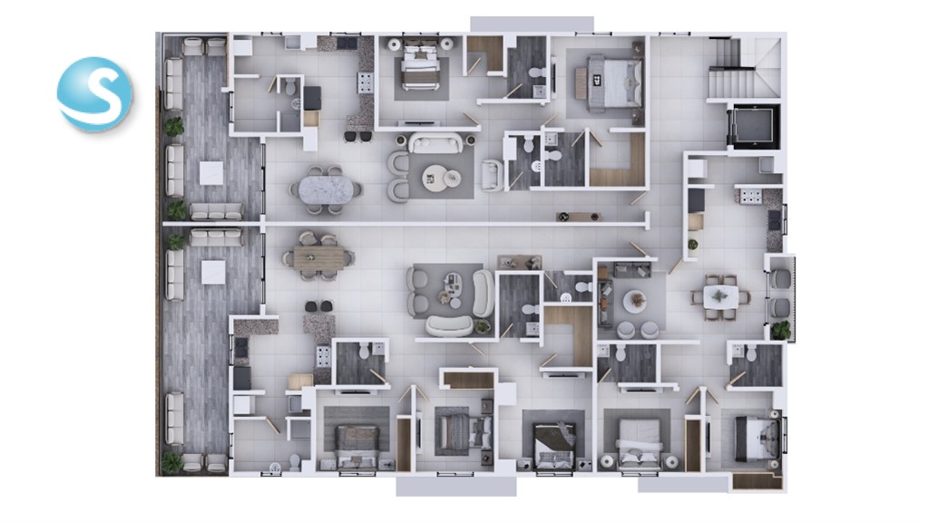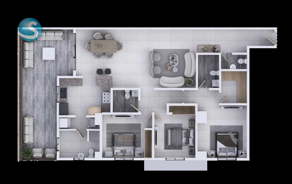 El Proyectos de apartamentos con terminación de primera ubicado en los Prados. Fecha de entrega: Agosto 2026 Forma de pago: 10% A la firma 25% En la construcción 65% Contra entrega CARACTERÍSTICAS DE LOS APARTAMENTOS: 81.13 Mts + 4.78 Mts de Loker US$ 167,400 85.87 Mts + 3.26 Mts de Loker US$ 181,700 2 Habitaciones (principal con baño) 2 Baños Sala Comedor Cocina Balcon Area de lavado 1 Parqueo 121.17 Mts. 2 habitaciones con baño y W/C. US$ 231,000.00 121.17 Mts+ 17.82 Mts de terraza. 2 habitaciones con baño y W/C. US$ 248,000.00 140.26 Mts + 23. 65 Mts de terraza. 3 habitaciones (Principal con baño y W/C). US$ 290,000.00 180,22 Mts + 38.93 Mts de terraza. 2 Habitaciones, 1 Baño común, Estar y Desayunador US$ 363,600 197.69 + 43.86 Mts de terraza. 2 Habitaciones, 1 Baño común, Estar y Desayunador. US$ 399,500 1.5 baño Recibidor Sala Comedor Cocina Area de lavado Cuarto de servicio con baño 2 Parqueos CARACTERISTICAS GERNERALES: Area social con BBQ y Kitchenette Planta electrica full Ascensor ultima generacion Intercom video portero Control de acceso y token Sistema de pozo tubular Gas común Baño para conserje Sistema contra incendio Pre-instalacion A/A