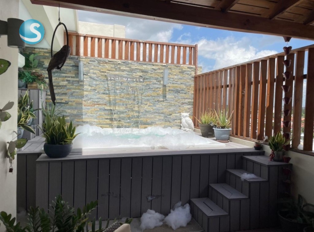 ??? Penthouse en Venta – 222 m² | 2 Niveles Moderno y exclusivo penthouse distribuido en dos niveles, con un total de 222 m² de construcción, ubicado en una torre con ascensor y lobby climatizado, ideal para quienes buscan confort, privacidad y espacios sociales amplios. Distribución Primer nivel Sala Comedor Cocina Balcón Área de lavado Cuarto de servicio con su baño 2 habitaciones, cada una con su baño Baño de visitas 2 parqueos lineales Segundo nivel Habitación principal con baño Área social privada Picuzzi con capacidad para 8 personas Área de BBQ Cocina Baño para visitas Detalles del apartamento Instalación de línea blanca Calentador de agua Purificador de agua Mallas en todas las ventanas Shutters en todas las ventanas Cámaras de seguridad y sistema de alarma Amenidades de la torre Ascensor Lobby climatizado Precio de venta:315,000,00 Negociable ?? Mantenimiento: RD$8,500 ?? Contacto:8293990815 Yicauris Reyes