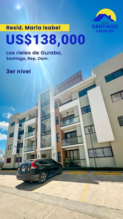 Oportunidad en Residencial de Apartamentos ?? Ubicación: Los Rieles de Gurabo, República Dominicana ?? Unidad Disponible: • 110 m² (tercer nivel 3er) ?? Precio de Venta: USD 138,000 ?? Inicial: 28,000 USD ? Características del Apartamento: • ?? 3 habitaciones (principal con vestidor) • ?? 2 baños • ??? Sala • ??? Comedor • ????? Cocina • ?? Área de lavado • ?? 2 parqueos • ?? Balcón ? Generalidades del Proyecto: • ??????? Piscina • ??????? Lobby • ?????? Gimnasio • ?? Área de BBQ