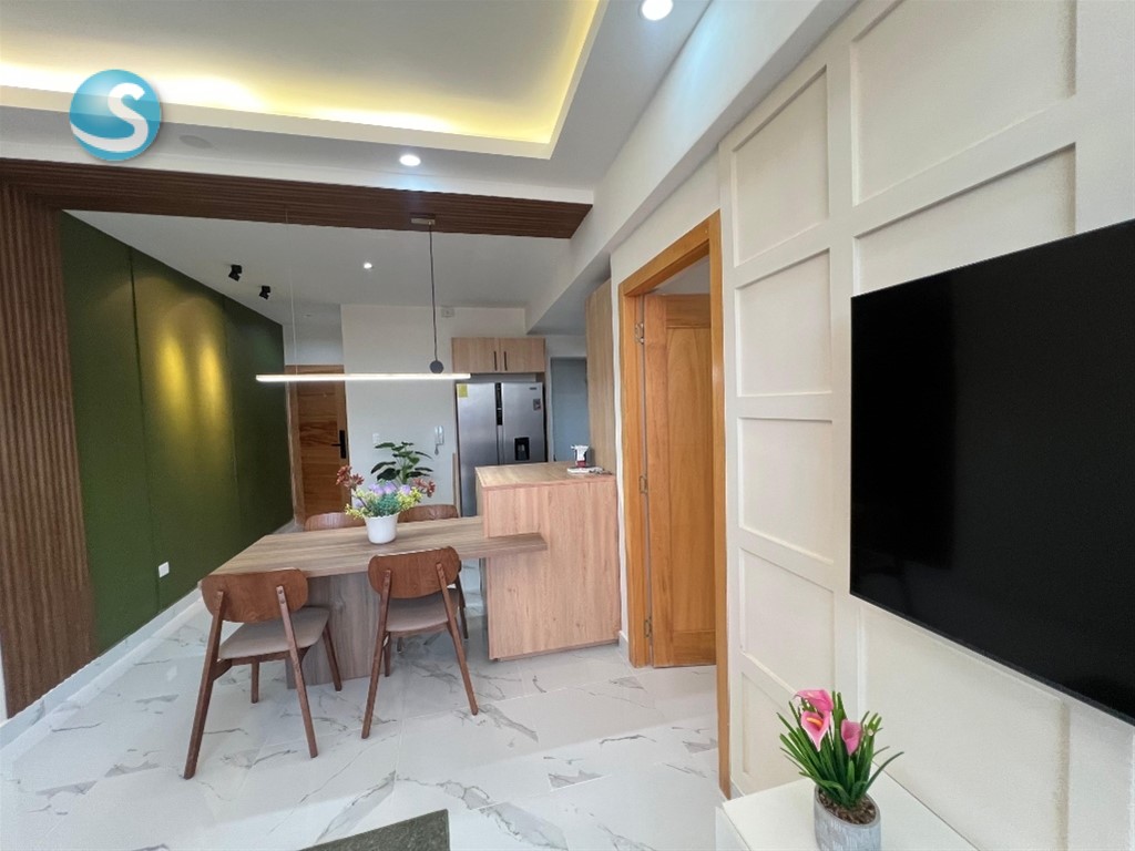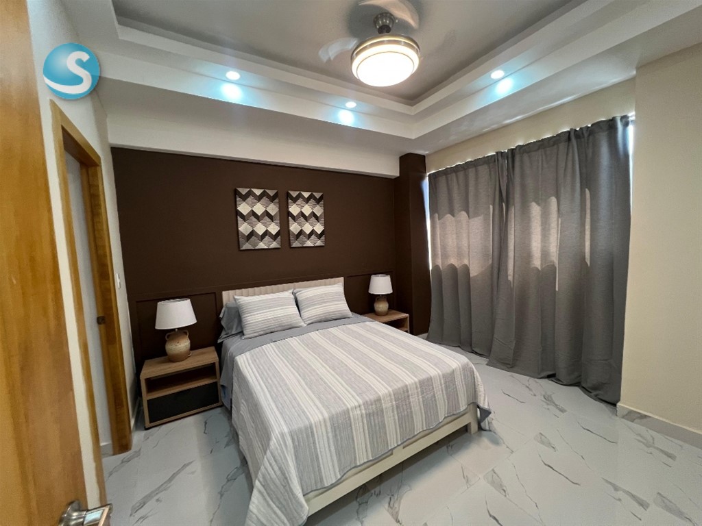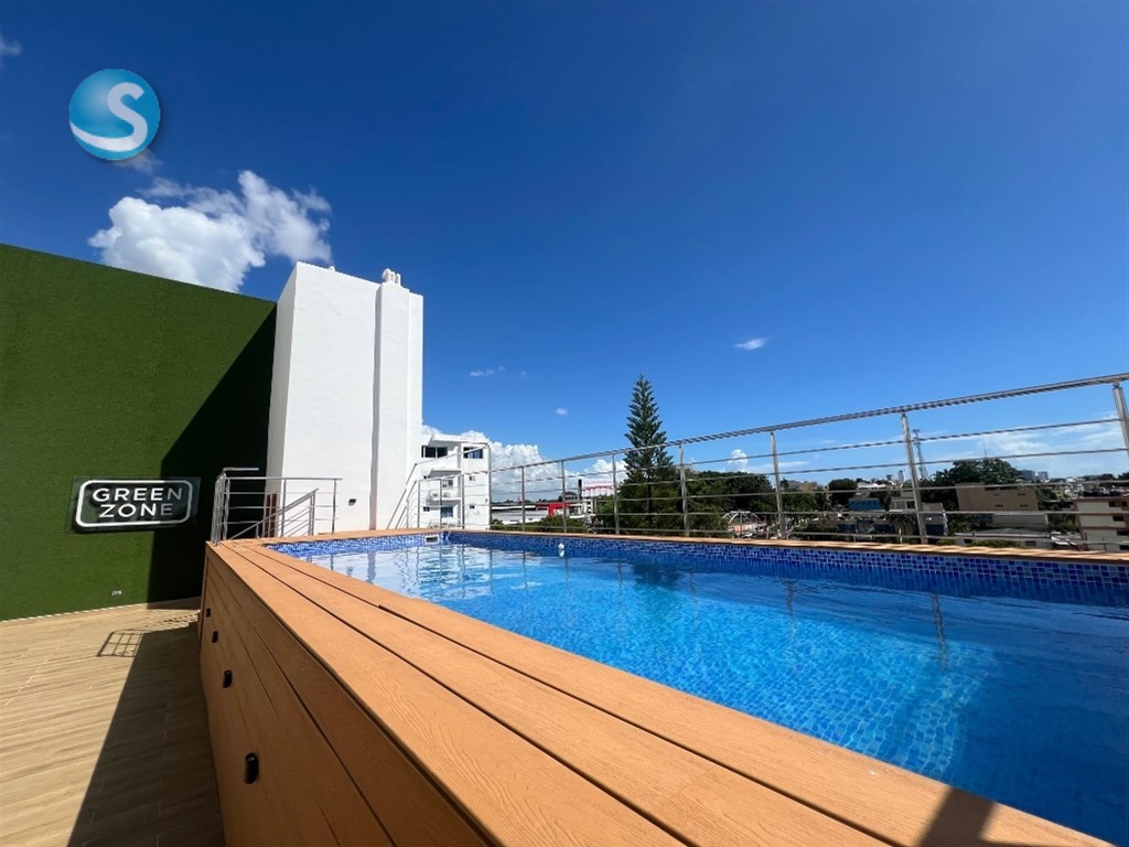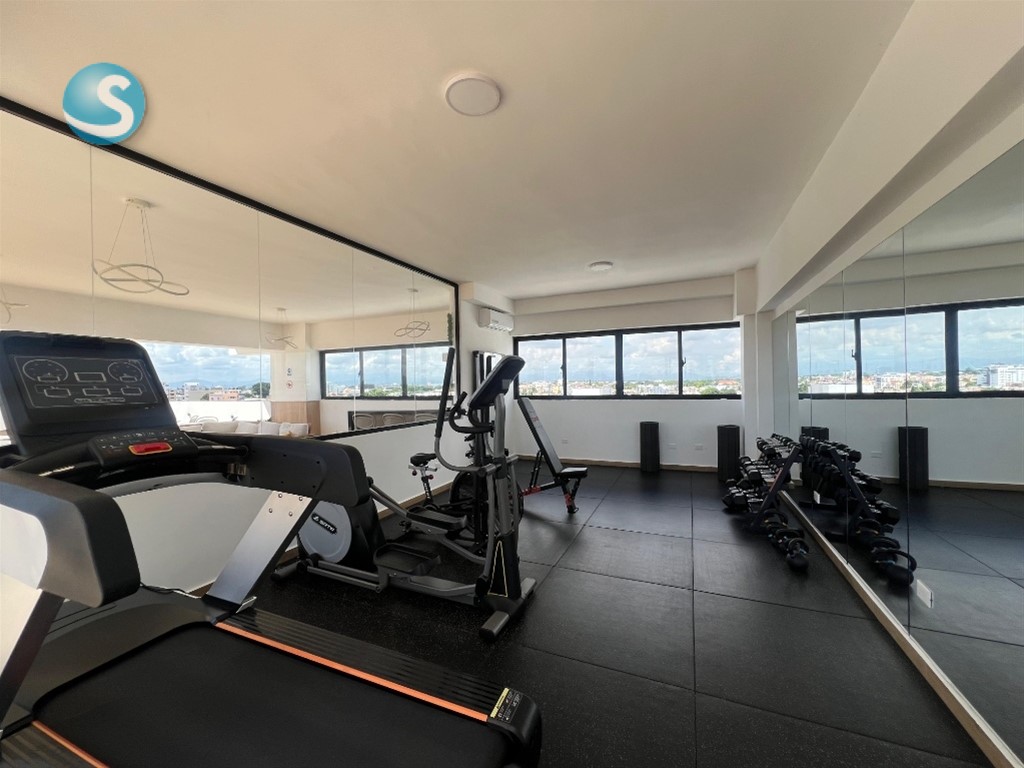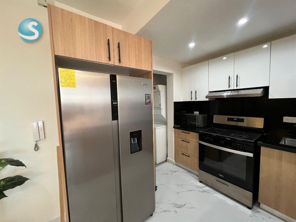 Apartamento amueblado en alquiler en Torre Alan VI Cuenta con: 60 m² , 8º piso con ascensor distribución funcional 1 habitación 1 baño completo 1 medio baño 1 parqueo La torre cuenta con: Areas sociales Piscina Gimnasio Bar Terraza destechada US$900 Mantenimiento incluido