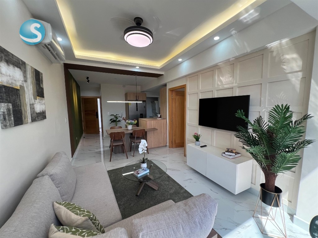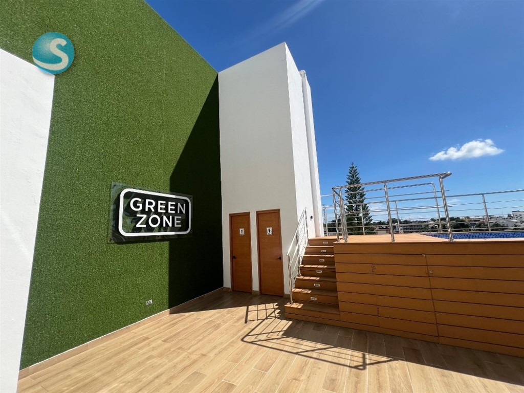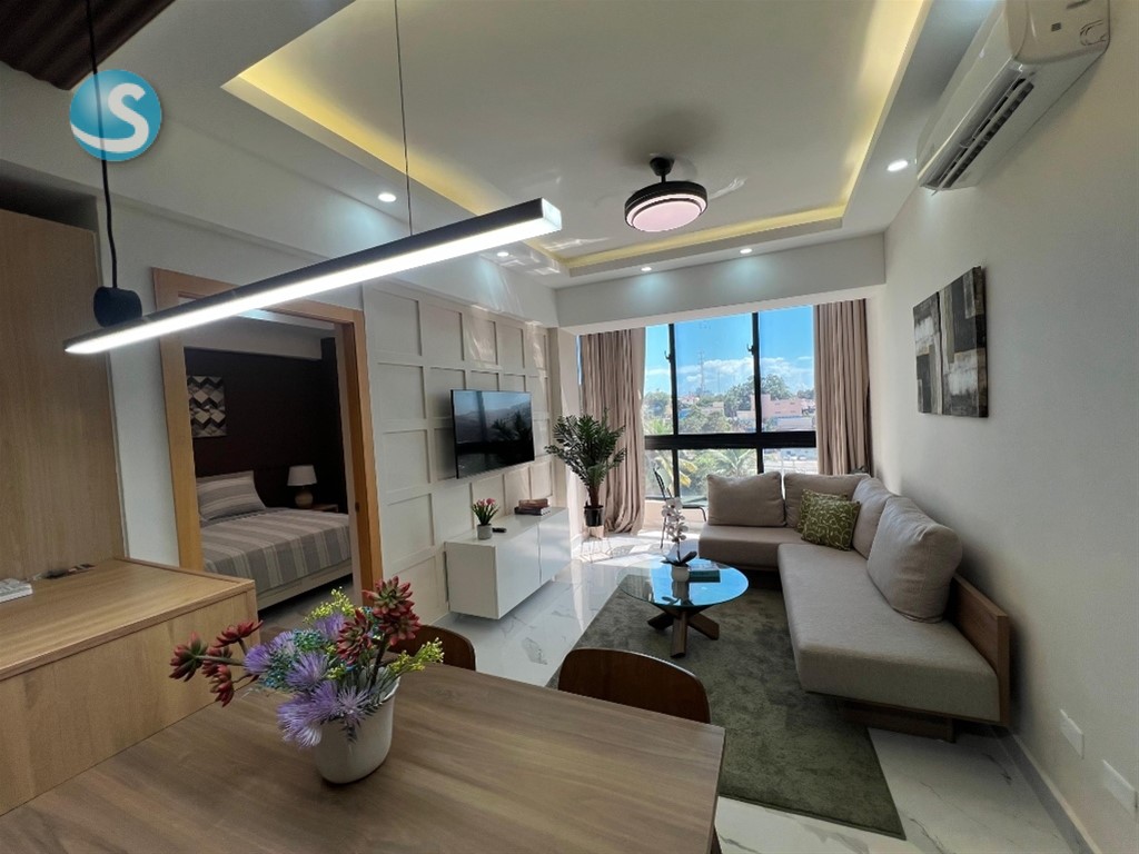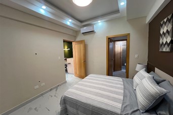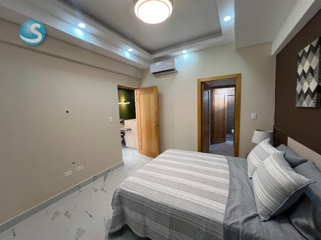 Apartamento amueblado en alquiler en Torre Alan VI Cuenta con: 60 m² , 8º piso con ascensor distribución funcional 1 habitación 1 baño completo 1 medio baño 1 parqueo La torre cuenta con: Areas sociales Piscina Gimnasio Bar Terraza destechada US$900 Mantenimiento incluido