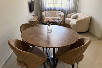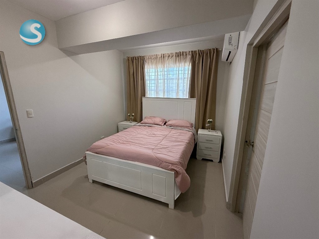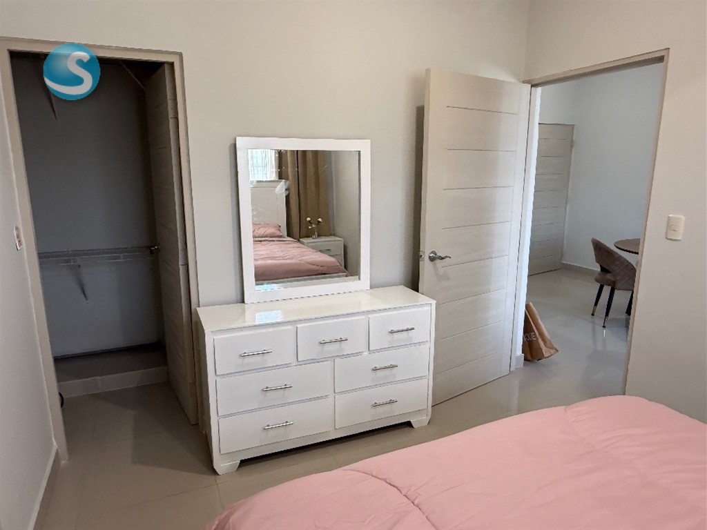 Características del Apartamento 1 habitación, con su baño con botiquín walking clóset equipado con divisiones Sala comedor Cocina con desayunador y suficientes habinetes de madera con divisiones Despensa de buen tamaño con divisiones Área de lavado Gas común incluido en el mantenimiento 1 Parqueo techado Completamente amueblado todo nuevo Muebles curvos modernos con mesa de centro Credenza Televisión Juego de comedor 4 sillas Nevera grande de 3 puertas Estufa con horno Lavadora secadora Juego de habitación Aire acondicionado Lámpara abanico de techo con dispositivo para música