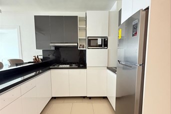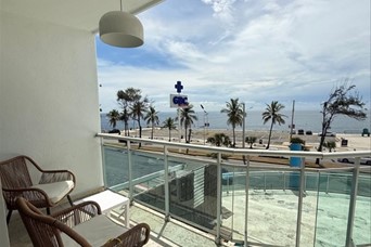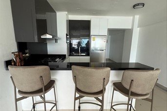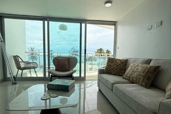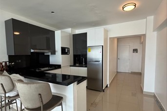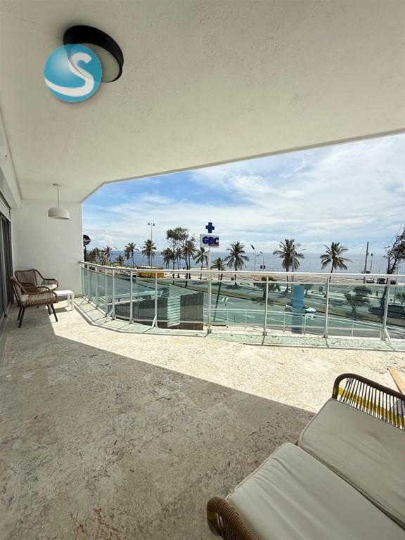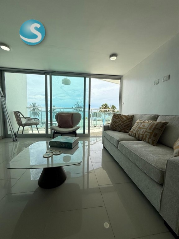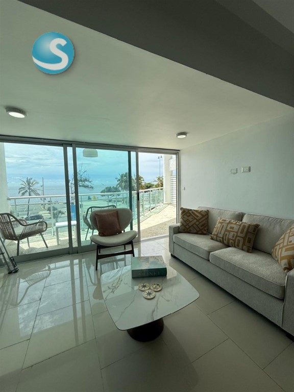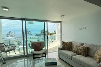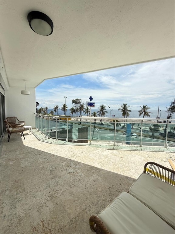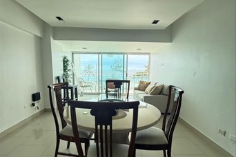 Rento Apartamento totalmente amueblado en segundo nivel con terraza, VISTA AL MAR, Ave. George Washington Características: Metraje: 130 Mts2 Habitaciones: 2 Baños: 2 Parqueos: 1 Amplia Sala Comedor Cocina abierta estilo europeo Amenidades de la torre: Bar Restaurant Lounge Piscina Precio de renta: US$2,000 mantenimiento incluido