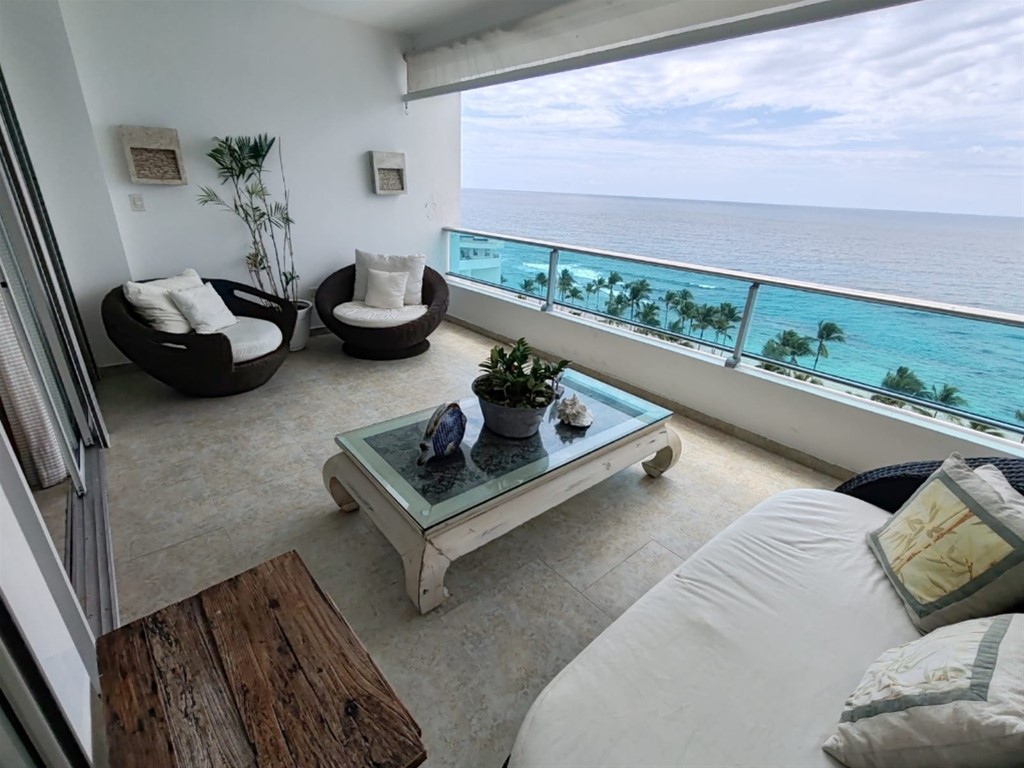 Apartamento en venta en Juan Dolio, primera linea de playa, espectacular vista, espacios amplios y bien distribuidos, completamente amueblado. Piso alto 166 metros de construcción 3 habitaciones con baños sala comedor cocina con desayunador balcón tipo terraza área de lavado 1 parqueo piscina de adulto y niños jacuzzi área de juego de niños gimnasio canchas deportivas restaurante lobby con conserjería 24 horas gacebo 2 ascensores planta full Mantenimiento de US$3 el metro Inversión total US$460,000.00 amueblado Más información y visitas: Megumi Matsunaga 829-630-4846