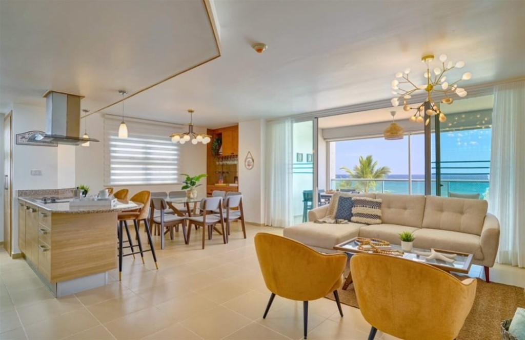 Aqui te presento la oportunidad de vivir o vacacionar en el paraíso, hermoso y amplio apartamento en el complejo mas seguro y exclusivo del área de Juan Dolio ( Torres Marbella ). Esta unidad ubicada en el 3er nivel, te brinda vistas únicas a la playa, más de 165 metros de puro lujo y comodidad, 3 amplias habitaciones, 3 baños ( modernos ), amplio balcón, sala de estar, shutters, aire central, cocina, área de lavado, parqueo techado asignado, se entrega completamente amueblado ( todos los muebles son nuevos comprados en Ilumel ). Características de Marbella : Piscinas Jacuzzis Hermosa Playa Gimnasio Seguridad 24 horas Juegos de Mesa Áreab Infantil Cancha de Volley ball Restaurant Gazebo Solarium Lobby Amueblado US$ 455,000