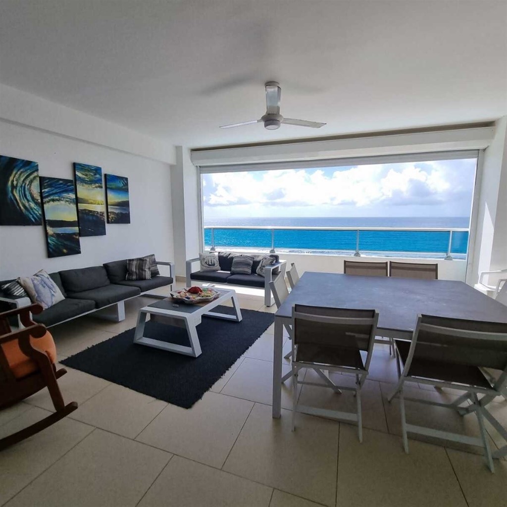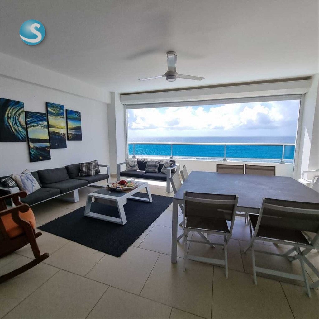 VENTA AMUABLADO FRENTE A LA PLAYA EN JUAN DOLIO Características 2 Habitaciones con clóset 2 baños completos Sala Comedor Cocina Desayunador Closet de ropa blanca Balcón grande Terminaciones Piso en porcelanato Shutter en el balcón CARACTERISTICAS DEL RESIDENCIAL Portón eléctrico Ascensor Luz 24 horas Cámaras de seguridad Planta full Área de juegos Gimnasio Canchas Piscina Lobby Cisterna Terraza común Precio de venta US$320,000