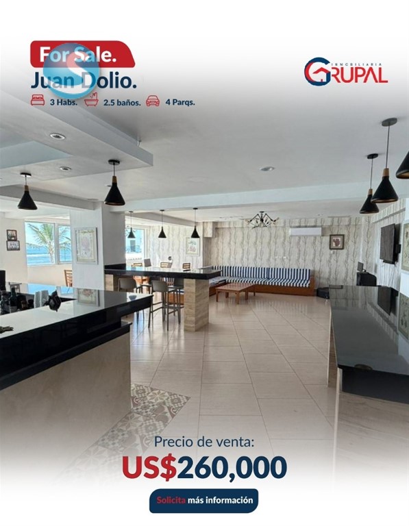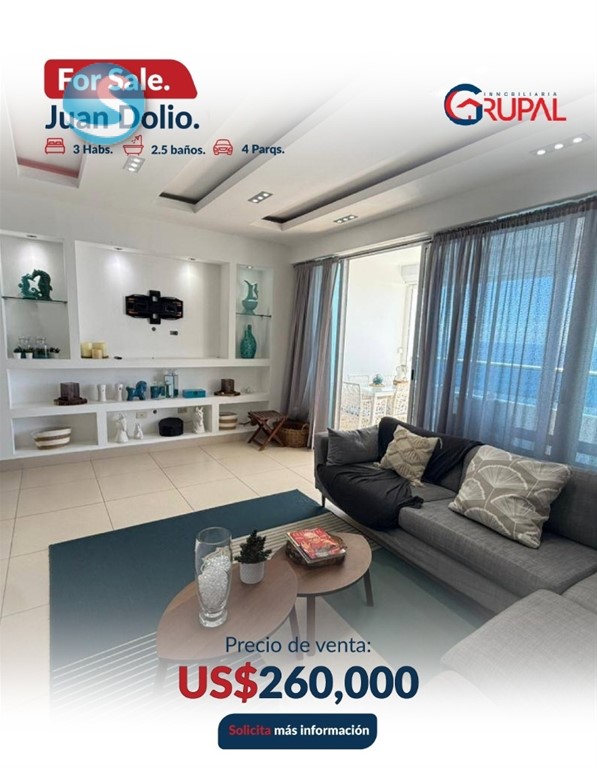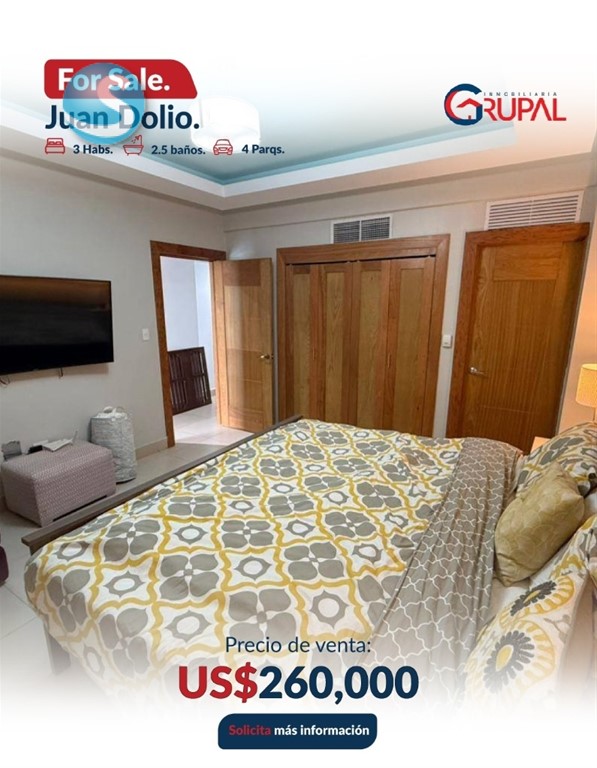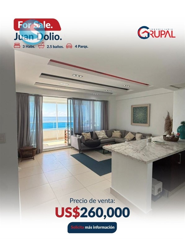 Venta de moderno apartamento Amieblado en Juan Dolio?? ?????????????????????????????? ?????? ?????????????????????? ??2 habitaciones ??2 baños completos ??1 parqueo ?????????????????????????????? ?? ???????????????????? ???? ???? ?????????? ??Portón eléctrico ??Ascensor ??Luz 24 hrs ??Cámaras de seguridad ??Planta full ??Área de juegos ??Gimnasio ??Salón Multiuso ??Lobby ??Terraza común ??Gas común ???????????? ???? ?????????? US$260,000???? ? Información: 809-454-7240 Carlos Tejeda