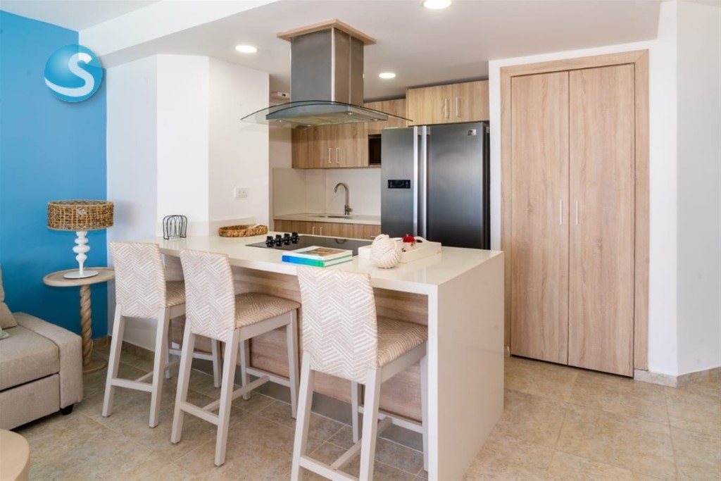Exclusividad frente al mar: venta de apartamento amueblado y remodelado de 2 habitaciones - Marbella – Juan Dolio Marbella – Juan Dolio Elegancia y Exclusividad Frente al Mar Caribe Presentamos este distinguido apartamento ubicado en el prestigioso complejo Marbella, reconocido como uno de los residenciales más exclusivos y seguros de Juan Dolio. Una propiedad ideal para quienes buscan confort, privacidad y una experiencia de vida frente al mar. Situado en el tercer nivel, el apartamento ofrece una hermosa vista panorámica al litoral costero y una agradable brisa marina que complementa cada espacio. Detalles de la Propiedad Área: 120 m² 2 amplias habitaciones 2 baños Balcón espacioso con vista al mar Cocina totalmente equipada Área de lavado Aire acondicionado central Shutters instalados Completamente remodelado Se vende amueblado con mobiliario y electrodomésticos de alta calidad Amenidades del Complejo Marbella Piscinas y jacuzzis Acceso a hermosa playa Gimnasio equipado Seguridad 24 horas Área infantil Cancha de voleibol Restaurante Gazebo y solárium Lobby elegantemente amueblado Áreas de recreación ?? Precio de venta: US$370,000 Una excelente oportunidad para vivir o invertir en una de las comunidades frente al mar más valoradas de Juan Dolio. ?? Para más información o coordinar una visita