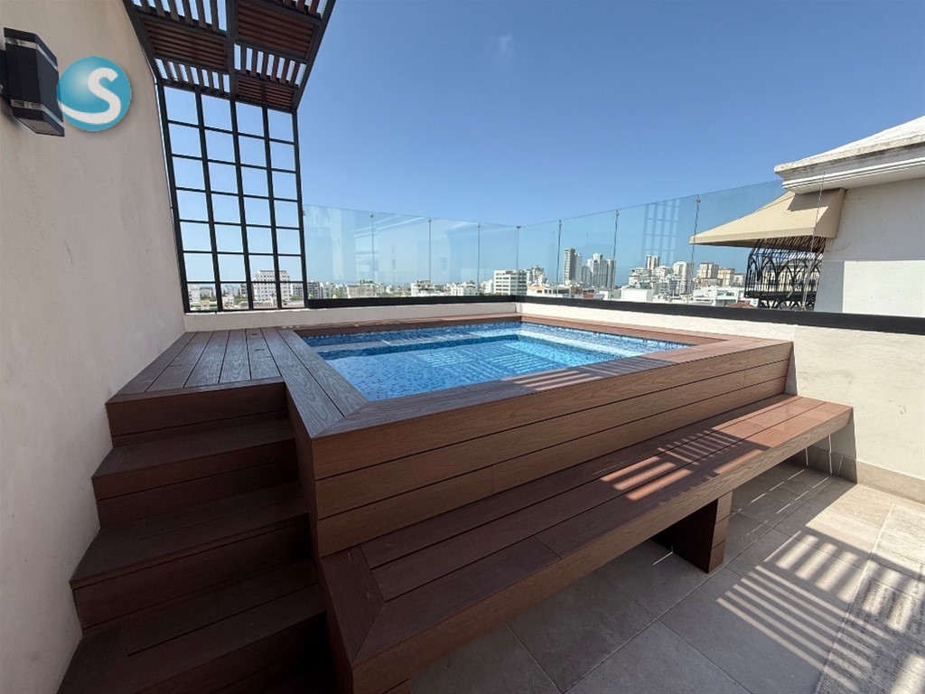 MIRADOR NORTE Penthouse de 3 habitaciones listo en Mirador Norte, próximo a la Romulo Betancourt y la Avenida 27 de Febrero. Amenidades: -Lobby amueblado y climatizado -Dos ascensores -Seguridad 24 horas -Planta Eléctrica full -Gas Común -Picuzzi -Terraza destechada y techada -BBQ -Área Infantil Característica del inmueble: -Piso 7 -149 metros netos de apartamento -Terraza 40 metros -3 habitaciones -Habitación principal con walking closet y baño -Habitaciones secundarias con closet y baño -3 baños -2 baños de visitar -Área de lavado -Cuarto de servicio con su baño -2 parqueos Precio: USD$340,000 LISTO PARA ENTREGA