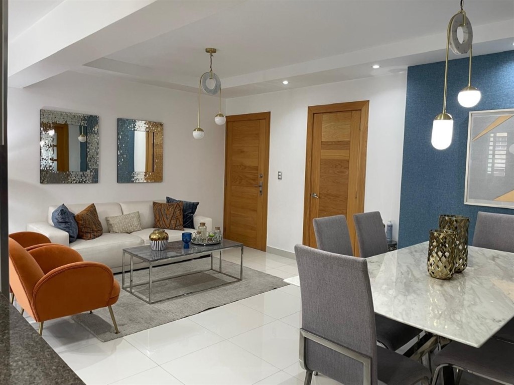 Características del apartamento Metros 163mts, Mirador Norte. 3er piso (vista al mar desde las habitaciones) - Habitaciones: - 3 habitaciones amplias y luminosas - Habitación principal con baño privado y Walking closet - Baños: - 2.5 baños Áreas - Sala amplia y acogedora - Estar para disfrutar en familia - Comedor - Cocina modular moderna y funcional - Locker privado - Área de lavado - Habitacion de se servicio c/ baño - Calendador de gas - Áreas sociales: - Ascensor última generación - Planta full - Seguridad 24 horas - Gas común incluido en el mantenimiento (RD10,500) - Gimnasio equipado - Área de juego de niños - Parqueo: - 2 parqueos techados y cómodos Mostrar menos
