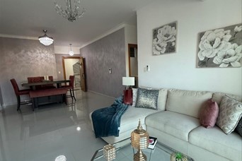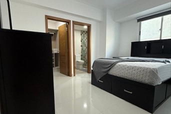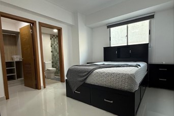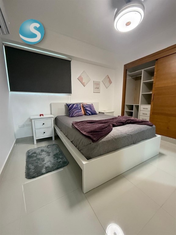 *Apartamento a estrenar en la mejor zona del Mirador Norte, a 300 Mts. de Downtown Center* Característica del Apartamento: *Amueblado* 125 Mts 2 habitaciones, cada una con su baño 2 parqueos techados Walk-in clóset en habitación principal Cocina Open Concept Medio baño de visitas Sala-Comedor Área de servicio Balcón Clóset de Ropa Blanca 6to Piso Característica de la Torre: Ascensores de última generación Área social con área BBQ Puertas, closets y gabinetes de cocina en madera preciosa Topes de cocina en granito Lobby Gimnasio equipado Pisos de porcelanato Planta eléctrica *Precio Alquiler amueblado RD$*1,500* dólares Incluye mantenimiento