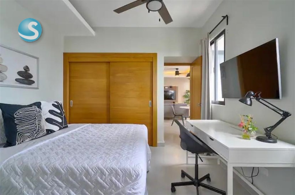 Alquilo apartamento amueblado de 1 habitacion con balcon Características : 46 m2 neto + 10 m2 balcon 1 Habitación 1 Baño 1 Parqueo Area social con gimnasio y terraza comun Alquiler amueblado 1,000US$ ID: EB-UW1257 https://www.tropical-livingdr.com/property/alquilo-apartamento-amueblado-de-1-habitacion-con-balcon