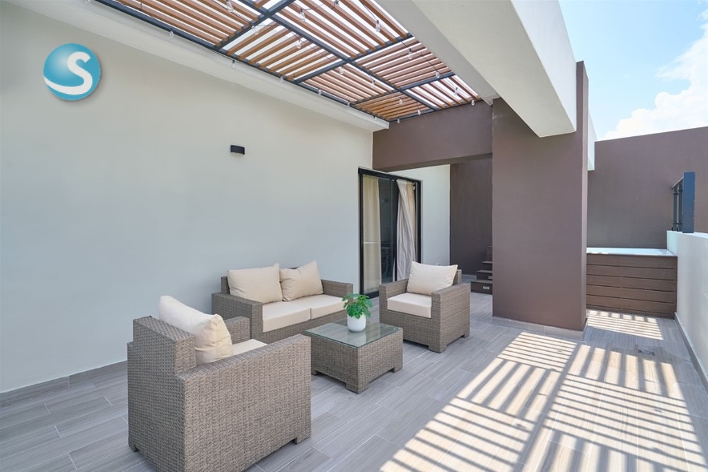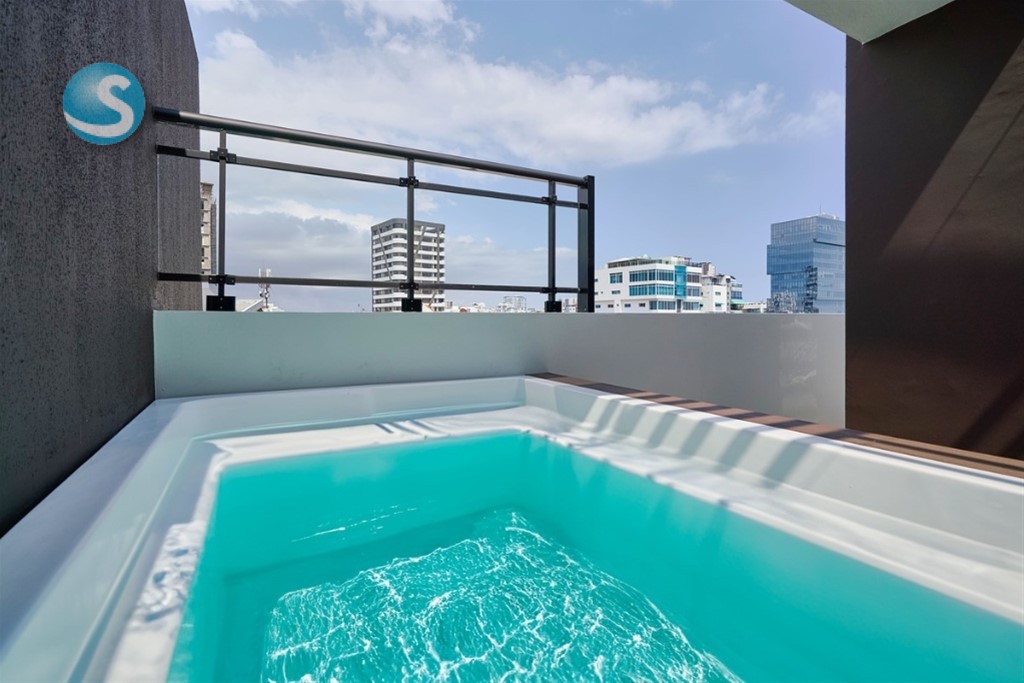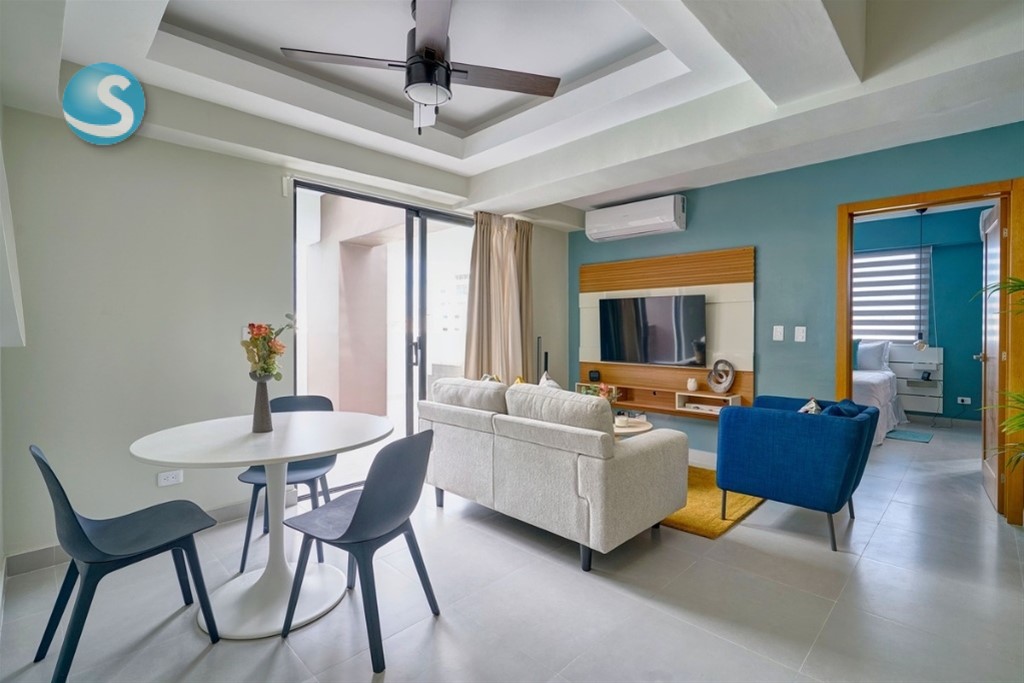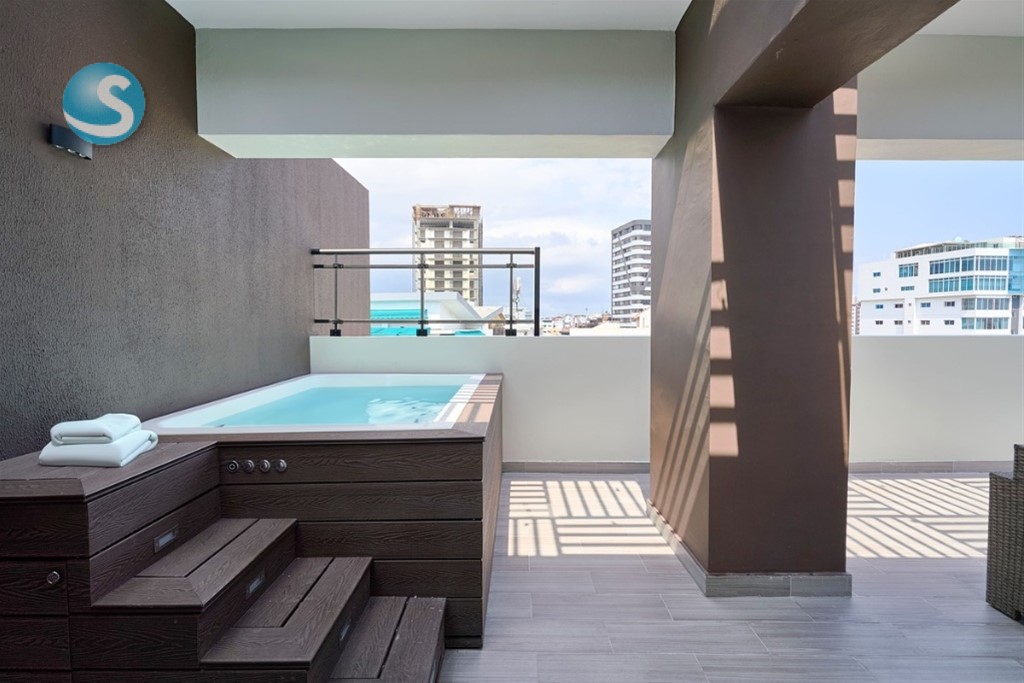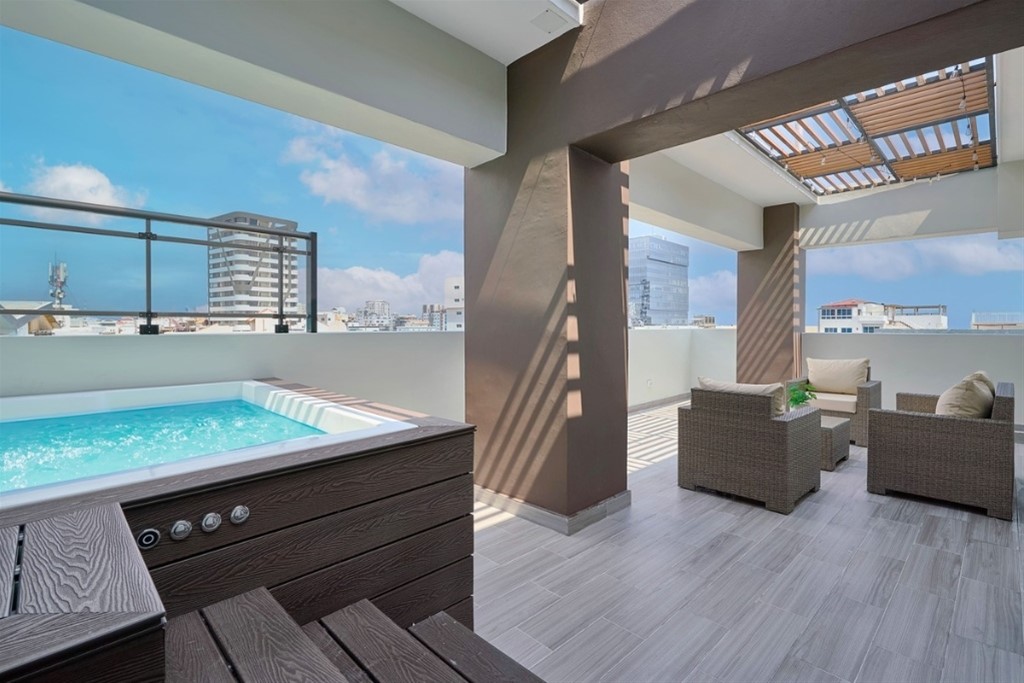 Alquilo apartamento amueblado de 1 habitacion con terraza privada Características : 52 m2 neto + 36 m2 terraza privada 1 Habitación 1 Baño 1 Parqueo Terraza privada Jacuzzi Area social con gimnasio y terraza comun Alquiler amueblado 1,200US$ ID: EB-QV9563 https://www.tropical-livingdr.com/property/alquilo-apartamento-amueblado-de-1-habitacion-jacuzzi-en-mirador-norte