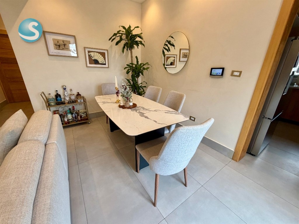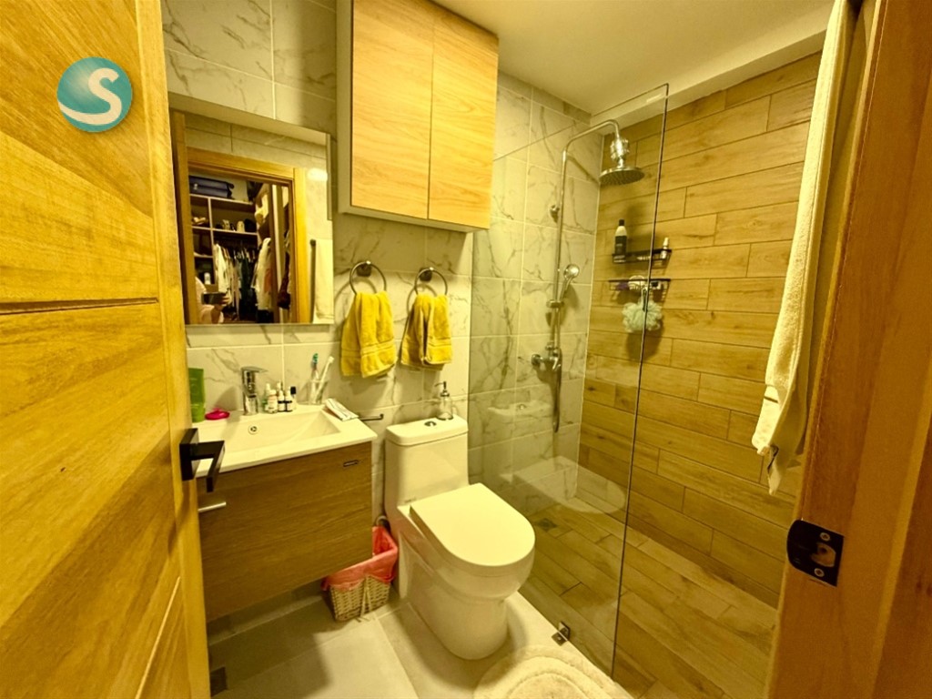 Moderno apartamento en venta en torre familiar, ubicado en calle tranquila de Mirador Norte: 100 mts netos de apartamento Sala Comedor Cocina con tope en cuarzo Área de lavado Cuarto de servicio 2 habitaciones, cada una con baño y walking closet ½ baño de visitas Balcón con vista frontal Shutters en todo el apartamento Estuco en paredes 2 parqueos paralelos La torre cuenta con: Gimnasio Terraza al aire libre Jacuzzi con vista al mar Lobby amueblado y climatizado *El apartamento se puede vender con línea blanca o amueblado. PRECIO DE VENTA: US$300,000