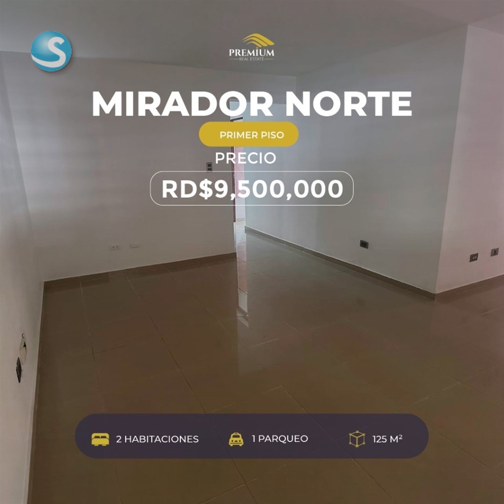 Mirador Norte 125 mts Primer piso 2 Habitaciones 2 Baños Sala Comedor Patio Privado 1 Parqueo Venta: RD$9,500,000 Ftm