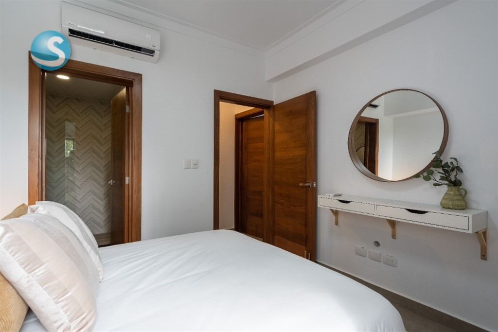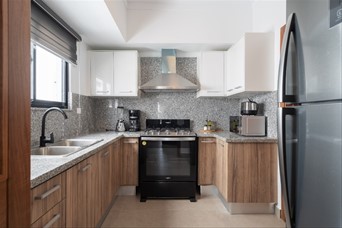 Apartamento totalmente amueblado ubicado en mirador norte. Esta propiedad cuenta con 134 mt2. Características generales: 2 Habitaciones 2.5 Baños Sala Balcón Comedor Cocina Área de lavado 2 Parqueos techados Amenidades: Lobby Gimnasio Terraza Ascensor Gas común Seguridad 24/7 Planta eléctrica