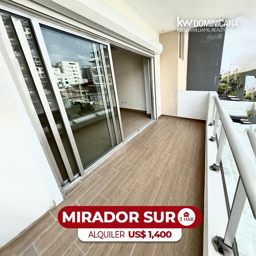 SOLO CLIENTES ALQUILER - Hermoso apartamento en Mirador Sur — un oasis urbano junto al Parque Vive con estilo y tranquilidad en una de las zonas más exclusivas del Distrito Nacional, a solo dos esquinas del Parque Mirador Sur y cerca de todo lo que necesitas: supermercados, restaurantes, gimnasios, colegios, farmacias y más. Mirador Sur | 3er nivel con ascensor 135 m² de construcción DISTRIBUCIÓN: * Balcón frontal con agradable vista * Sala y comedor con excelente ventilación e iluminación natural * Cocina moderna tipo open concept con desayunador * Estar familiar * 3 habitaciones (principal con baño y walk-in closet) * 2 .5 baños modernos * Habitación de servicio con baño completo * Área de lavado independiente * 2 parqueos lineales y techados AMENIDADES Y FACILIDADES DE LA TORRE: * Lobby climatizado * Ascensor * Terraza destechada con área de BBQ * Terraza techada con baño para eventos o reuniones privadas * Área infantil * Portón eléctrico * Cámaras de seguridad * Cerco eléctrico Precio de renta: USD 1,400 (mantenimiento incluido)