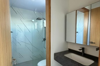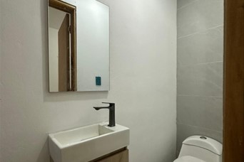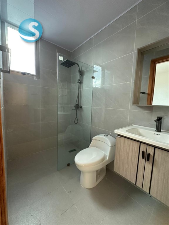 Antesala Sala Comedor Cocina abierta Baño de visitas Área de lavado Cuarto de servicio Clóset de ropa blanco Habitación secundaria con clóset con su baño Habitación principal con su baño y walck in clóset Segundo nivel una terraza techada en madera Dos parqueos paralelos Lobby climatizado Cámaras de seguridad Portón eléctrico Ascensor Área social Gimnasio Baño Terraza destechada