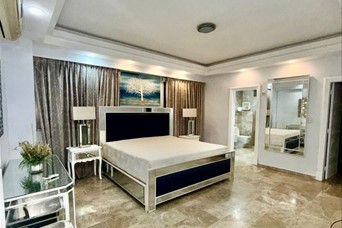 Apartamento en alquiler, piso alto, Mirador Sur. US$3,400 Amueblado US$3,200 Línea Blanca US$3,000 Vacio Características: 270 m² l * Sala amplia con vista panorámica * Comedor elegante * Cocina con desayunador * 3 Habitaciones con baño y vestidor (principal con jacuzzi) * Área de lavado + cuarto de servicio con baño * 4 Parqueos (1 parqueo para vehículo compacto) Locker * Shutters en todas las ventanas * Cerradura inteligente Amenidades de alto nivel: * Piscina, jacuzzi, bar KitchenAid y terraza con BBQ * Gimnasio equipado, sauna y baños M/F * Área infantil * Lobby elegante * 2 plantas eléctricas * 2 ascensores + 1 ascensor de carga
