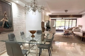 Características apartamento amueblado con terraza - 3 Habitaciones Cada una con su baño - cocina abierta - baño de visita - terraza techada y destechada - área de servicio con su dormitorio y baño - dos parqueos paralelos - inversión en el apartamento y área común 144M + 35 de terraza No planta No área social Mantenimiento incluido La calle es excelente, no hay ruidos, vista arbolada y hay muchos parqueos en la calle ya que al frente está la parte posterior de la Casa San Pablo. $1,400 REBAJADO 1,300/1,100