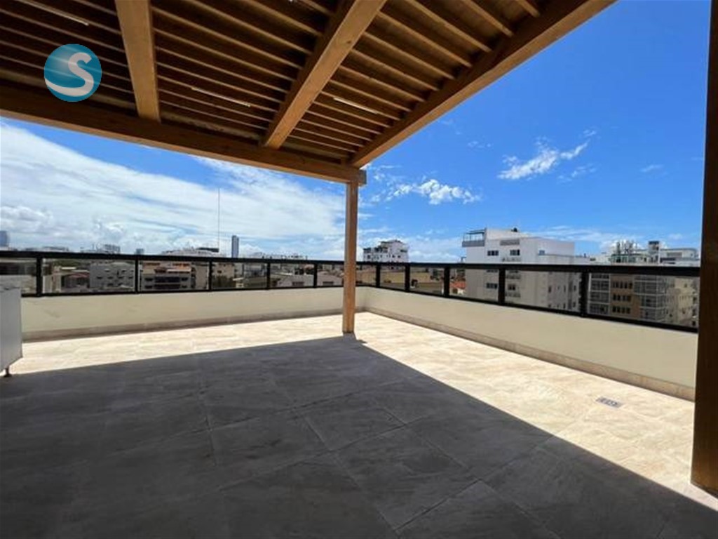 Descripción Penthouse en venta y alquiler en mirador sur Piso 5 y 6 3 habitaciones c/u con su baño y walking closet, principal con 2 W/C. 2 medio baño de visita Estudio Sala Cocina abierta Comedor Habitación de servicio con baño Área de lavado Terraza privada con kitchenette 4 parqueos paralelos techados Amenidades Locker 2 apartamentos por nivel Ascensor Planta full Lobby Seguridad 24/7 Cámaras de seguridad Gas común Portones eléctricos Gimnasio Terraza común con bbq Mantenimiento incluido Precio de alquiler US$2,000 Precio de venta US$430,000 Mantenimiento RD$12,000